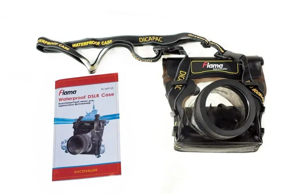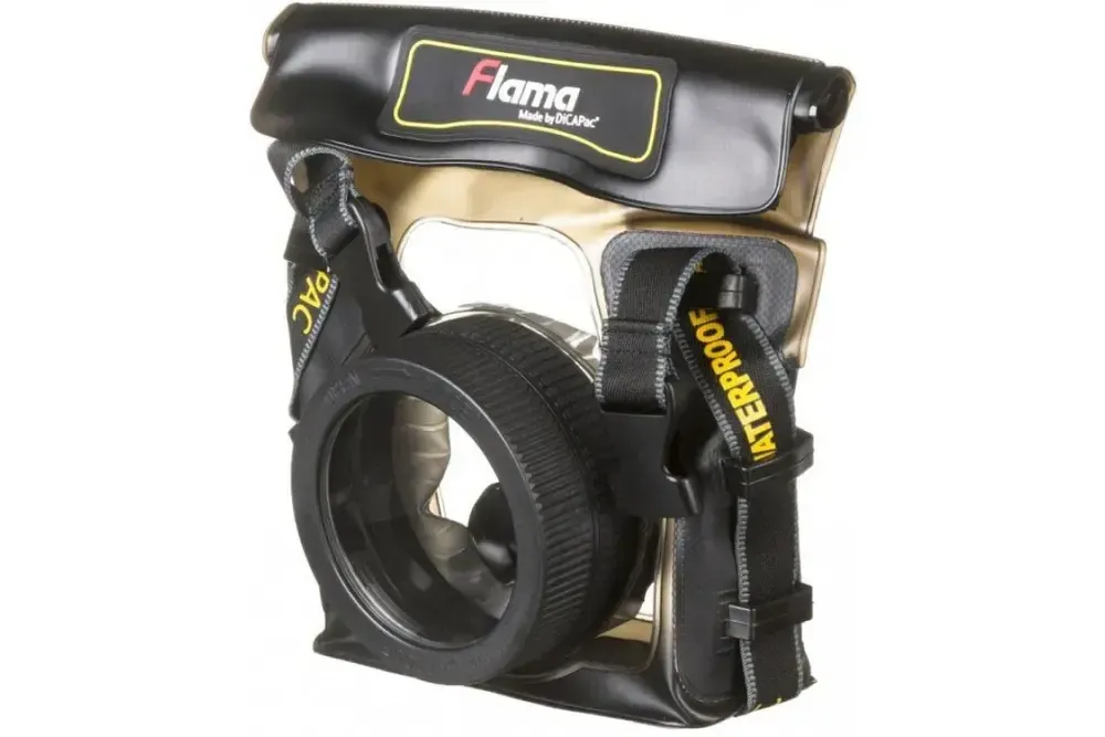 Водонепроницаемый чехол Flama - надежный и доступный водонепроницаемый футляр для небольших и среднеразмерных цифровых фотокамер из прозрачного винила и полиуретана.