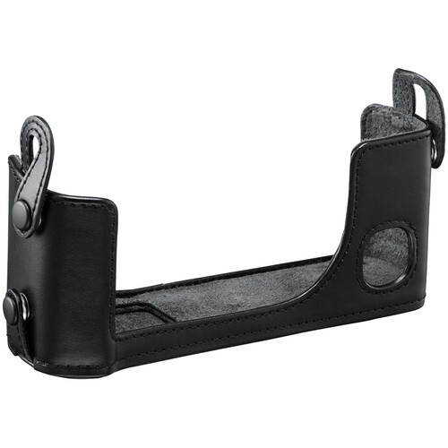 Защитный чехол из натуральной кожи для фотоаппарата Fujifilm X-Pro2. Защищает корпус камеры от ударов и прочих повреждений, не затрудняя управление камерой: откидная "дверца" для батарейного отсека позволяет менять аккумулятор, не снимая чехла. Натуральная кожа обеспечивает отличное сцепление и надежный захват камеры: этот материал превосходно впитывает пот и не дает пальцам проскальзывать. В комплекте также идет ткань для обертывания камеры при переноске в сумке.