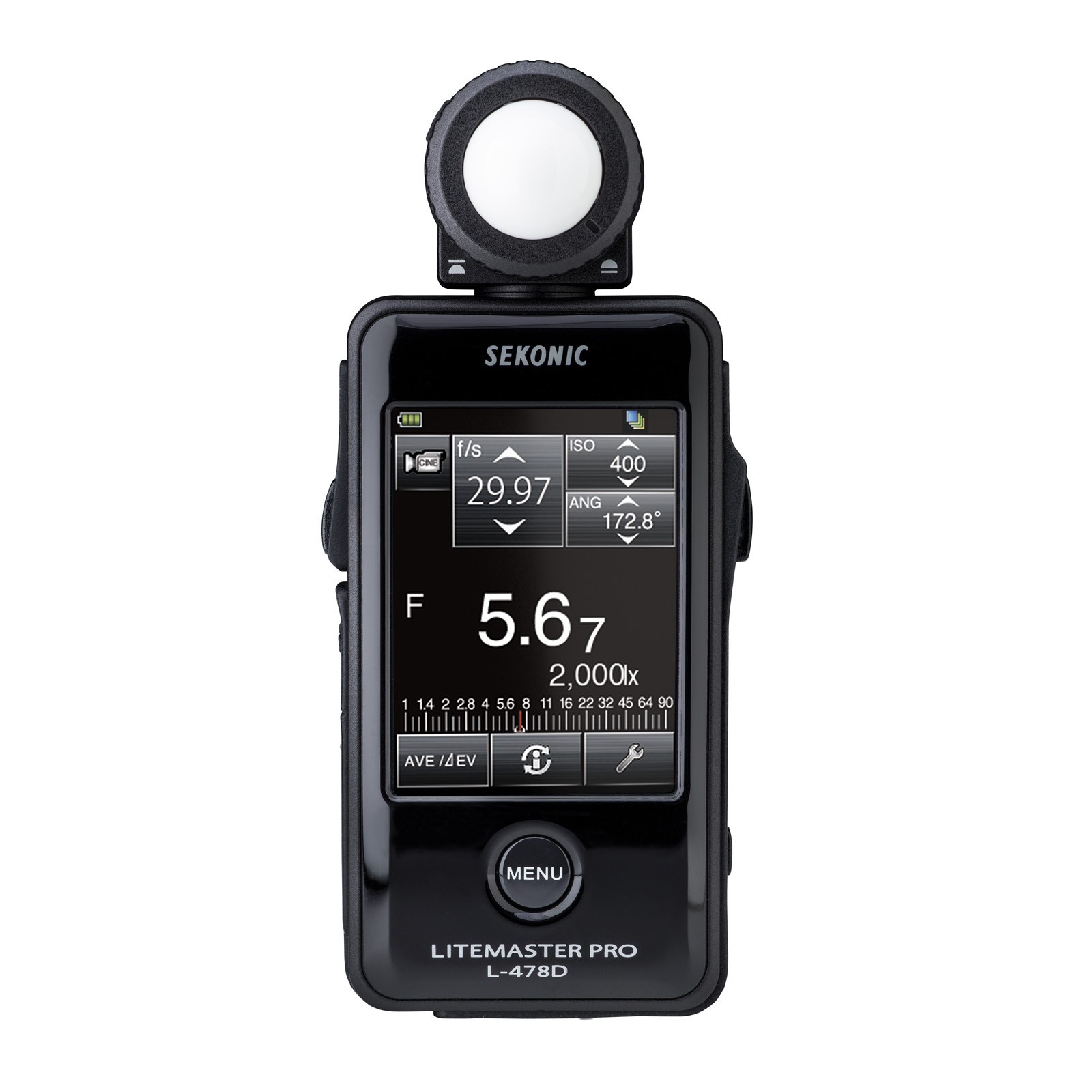 Sekonic LITEMASTER PRO L-478D - первый в мире экспонометр с сенсорным экраном. Он обладает множеством уникальных особенностей, необходимых и для фотографов, и для кино- видео-операторов. Компактных размеров экспонометр L-478D понятен и удобен в использовании. Большой цветной ЖК-экран (2.7-дюйма) отображает параметры постоянного, импульсного света, кино-параметры, и другую информацию. Настройка осуществляется касанием или движением пальца по экрану.