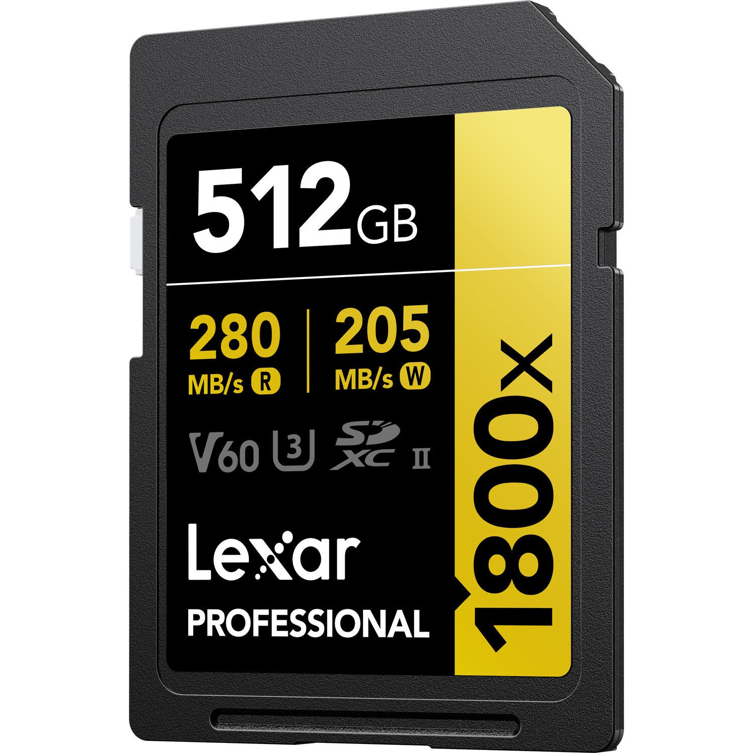 Карта памяти Lexar Professional 1800x Gold SDXC 512GB UHS-II U3 V60, R/W 280/205 МБ/с