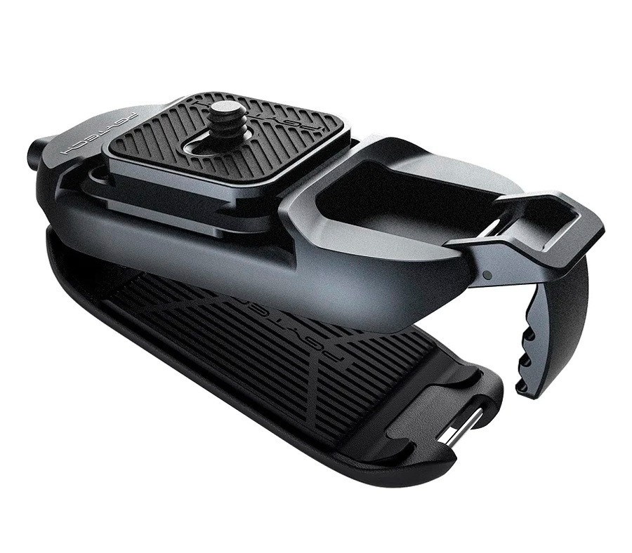 PGYTECH Beetle Camera Clip – металлическая пряжка для крепления камеры на поясном ремне, нагрудной лямке рюкзака или любом другом ремне шириной до 7.5 см и толщиной до 1.5 см. Съемная площадка крепится в штативное гнездо камеры, стандартная площадка позволяет ставить камеру в любом из 4 направлений. Например, поставив камеру боком, удобно менять объективы. Боковое крепление также хорошо подходит для камер с короткими объективами. Пряжку можно установить и на более широкие ремни, немного сжав их по краям.