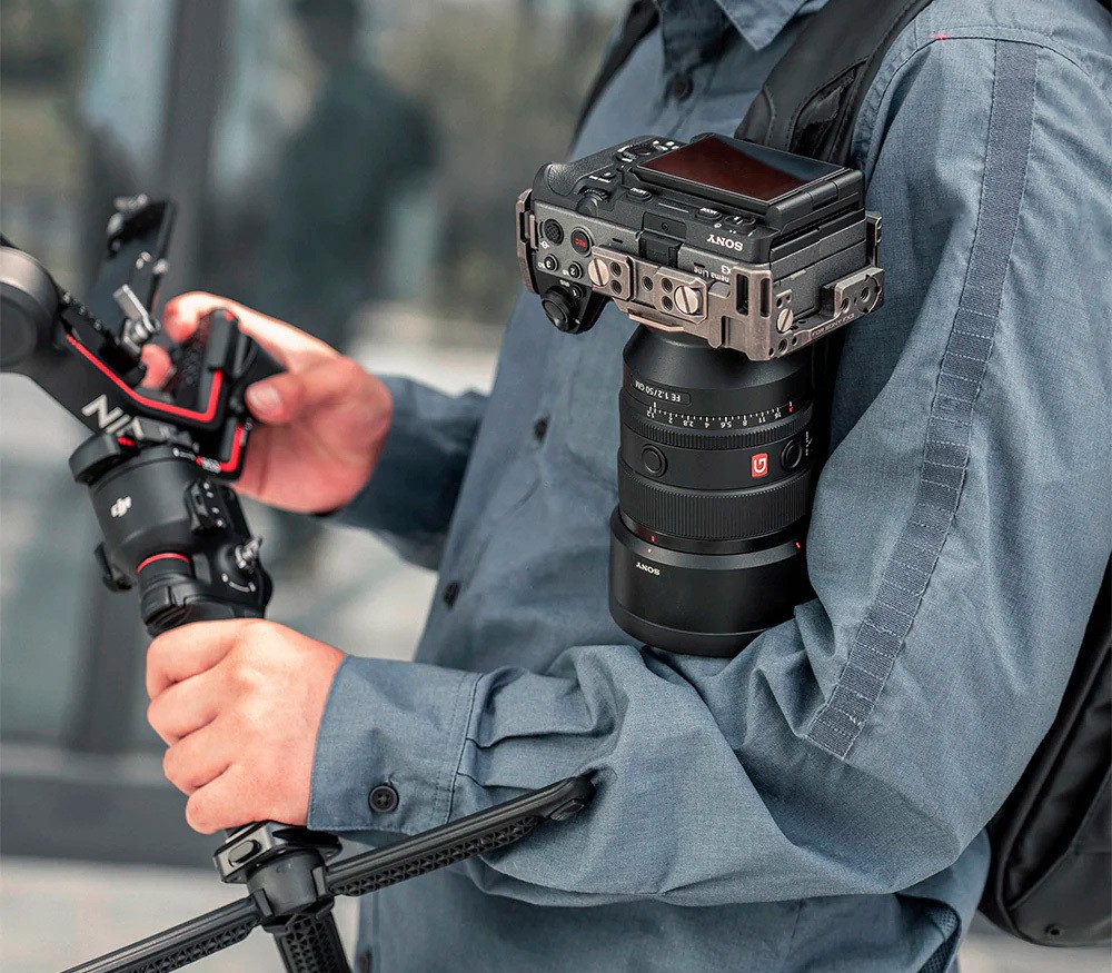 Площадка напрямую совместима со штативными головками системы Arca Swiss: вы можете снять камеру с пояса и поставить на штатив или стабилизатор и обратно.
