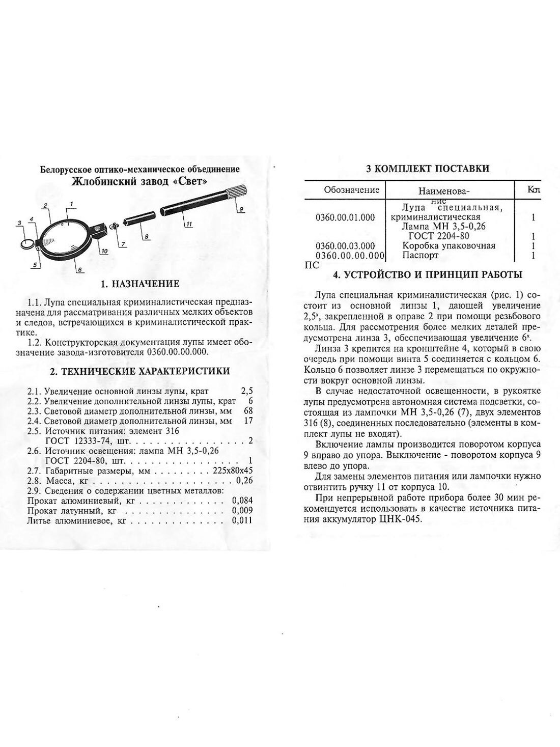Основные характеристики криминалистической лупы 2,5х-6х