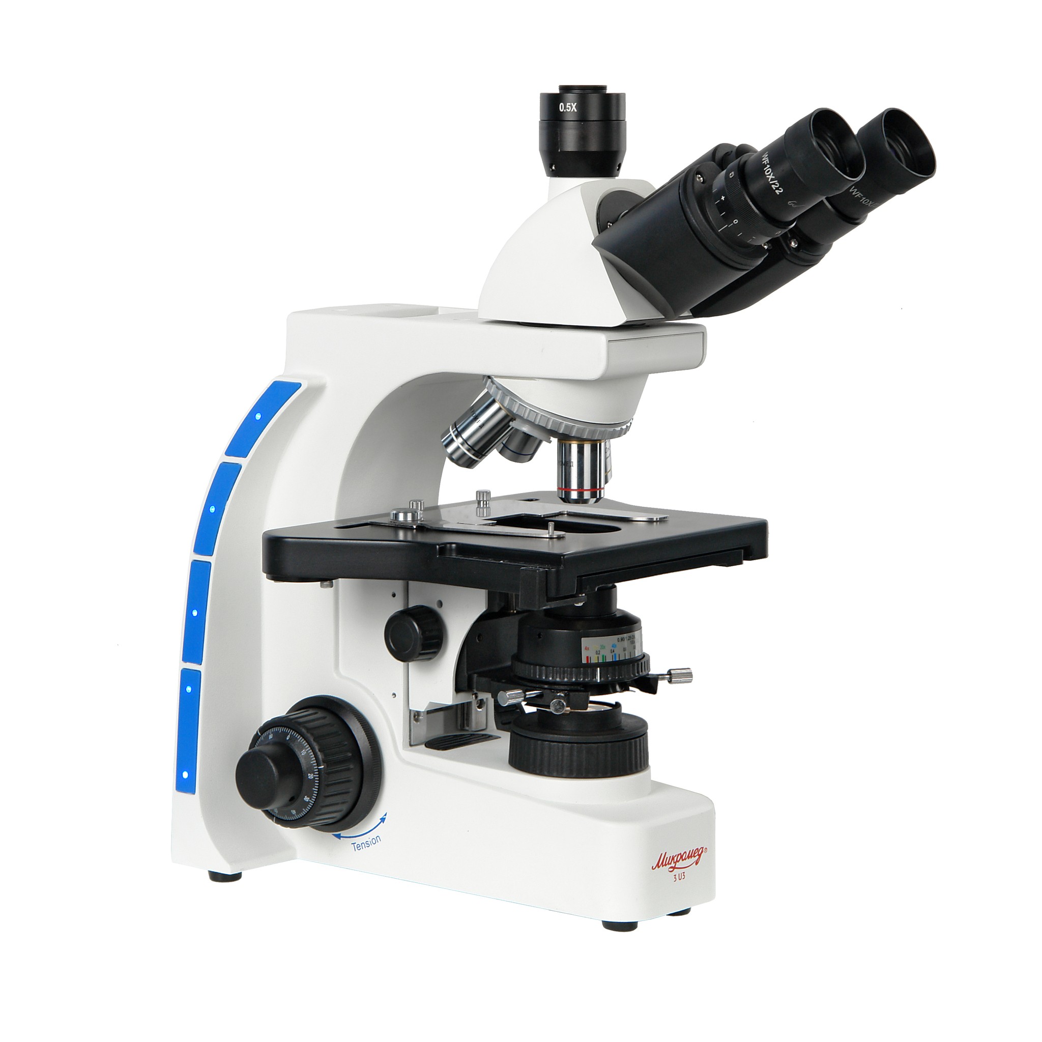 Микроскоп предназначен для исследований в проходящем свете по методу светлого поля. ?Осветительная система Кёлера. Светодиодное или галогенное освещение. Тринокулярная конструкция позволяет использовать цифровые окулярные камеры. Увеличение микроскопа в базовой комплектации 40х-1000х, с дополнительными окулярами 20х-1600х. Револьверное устройство на 5 объективов.