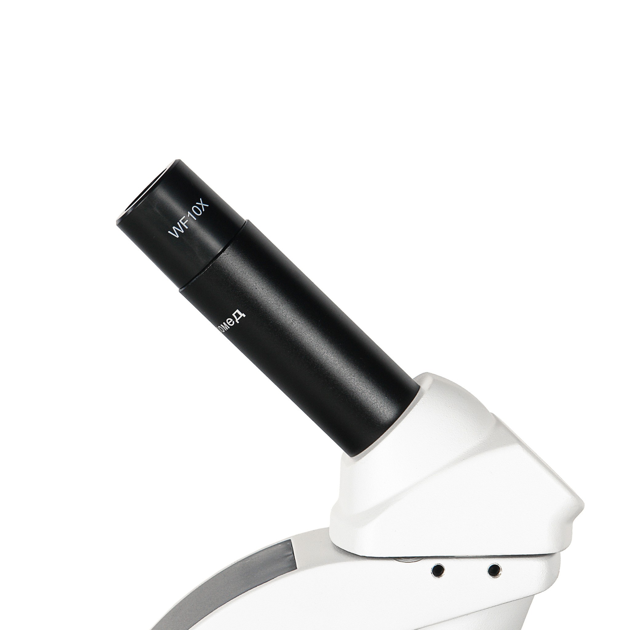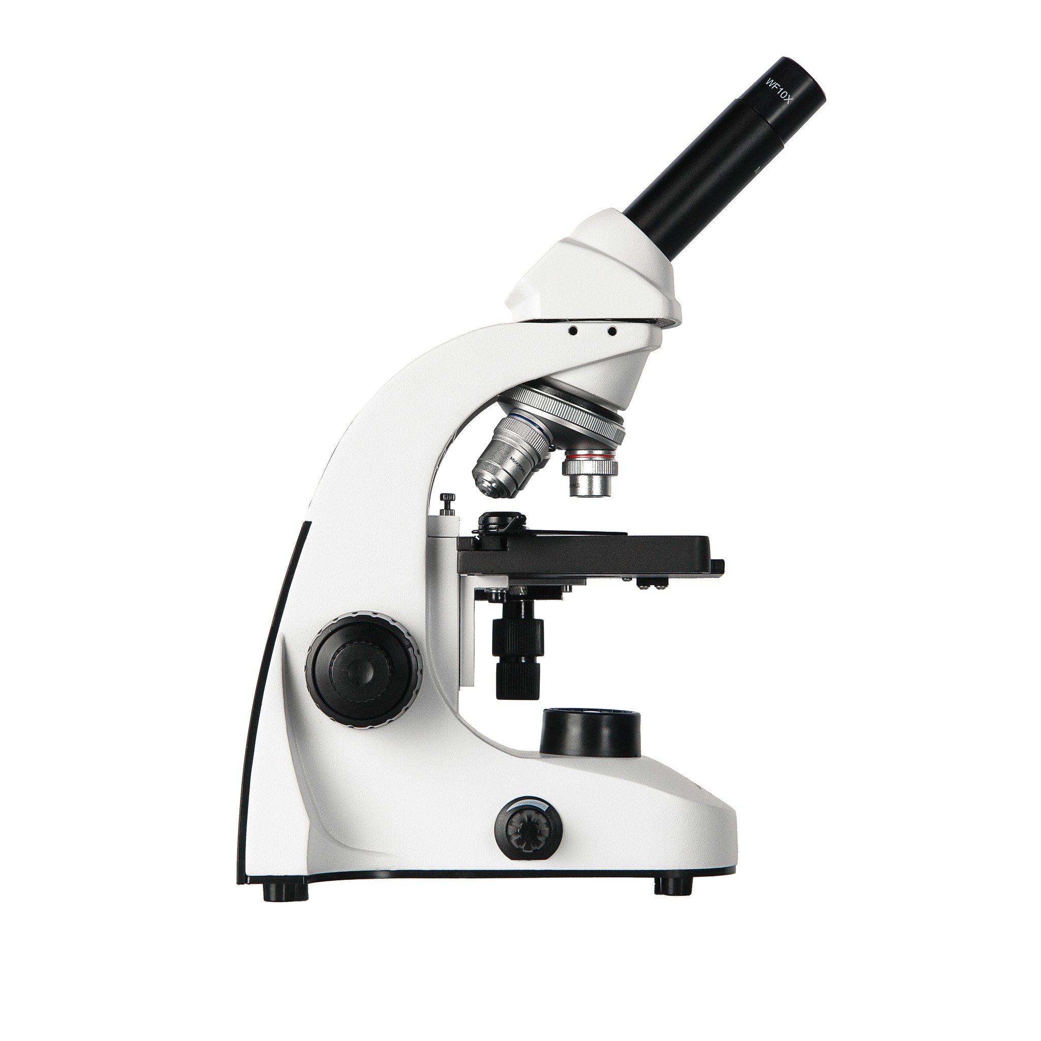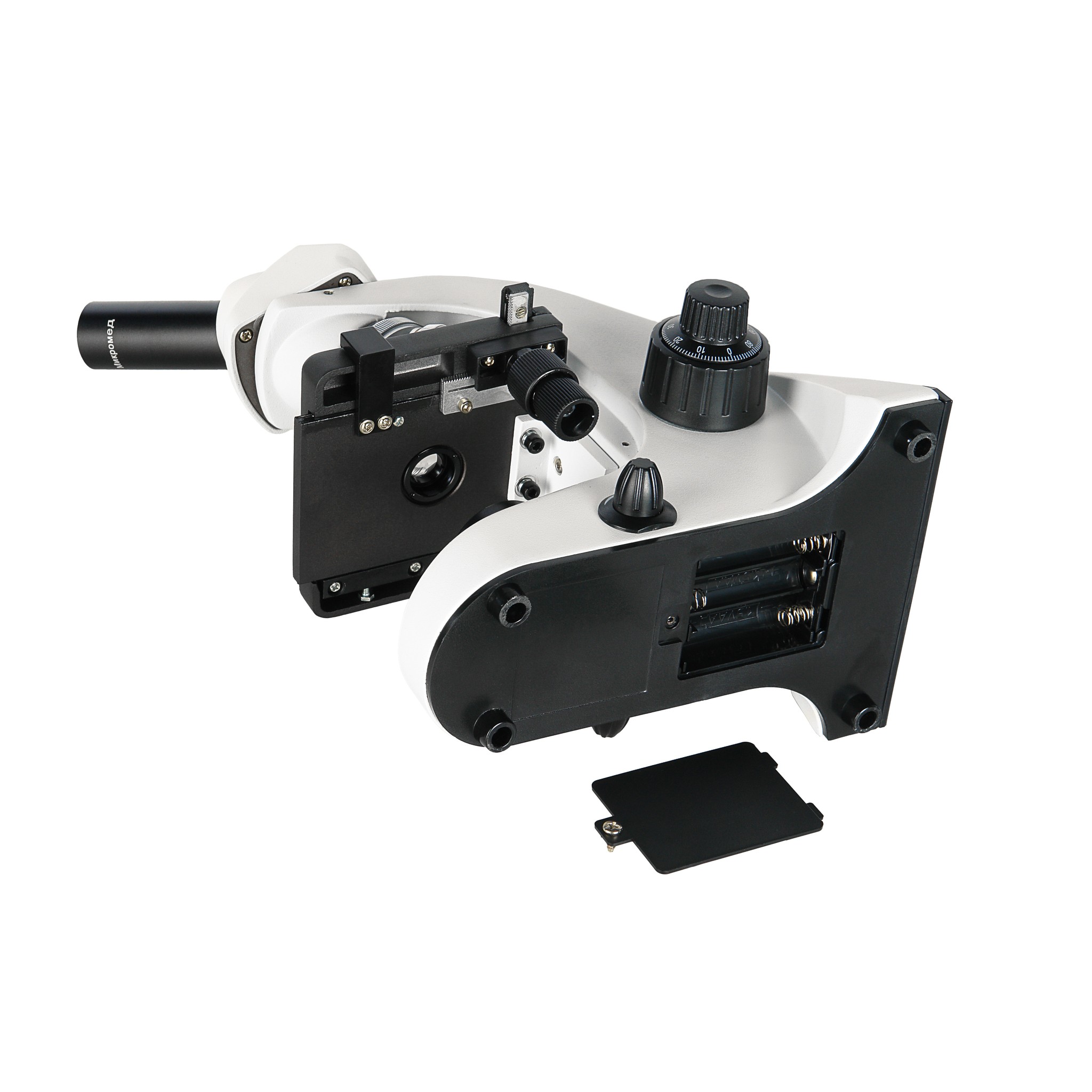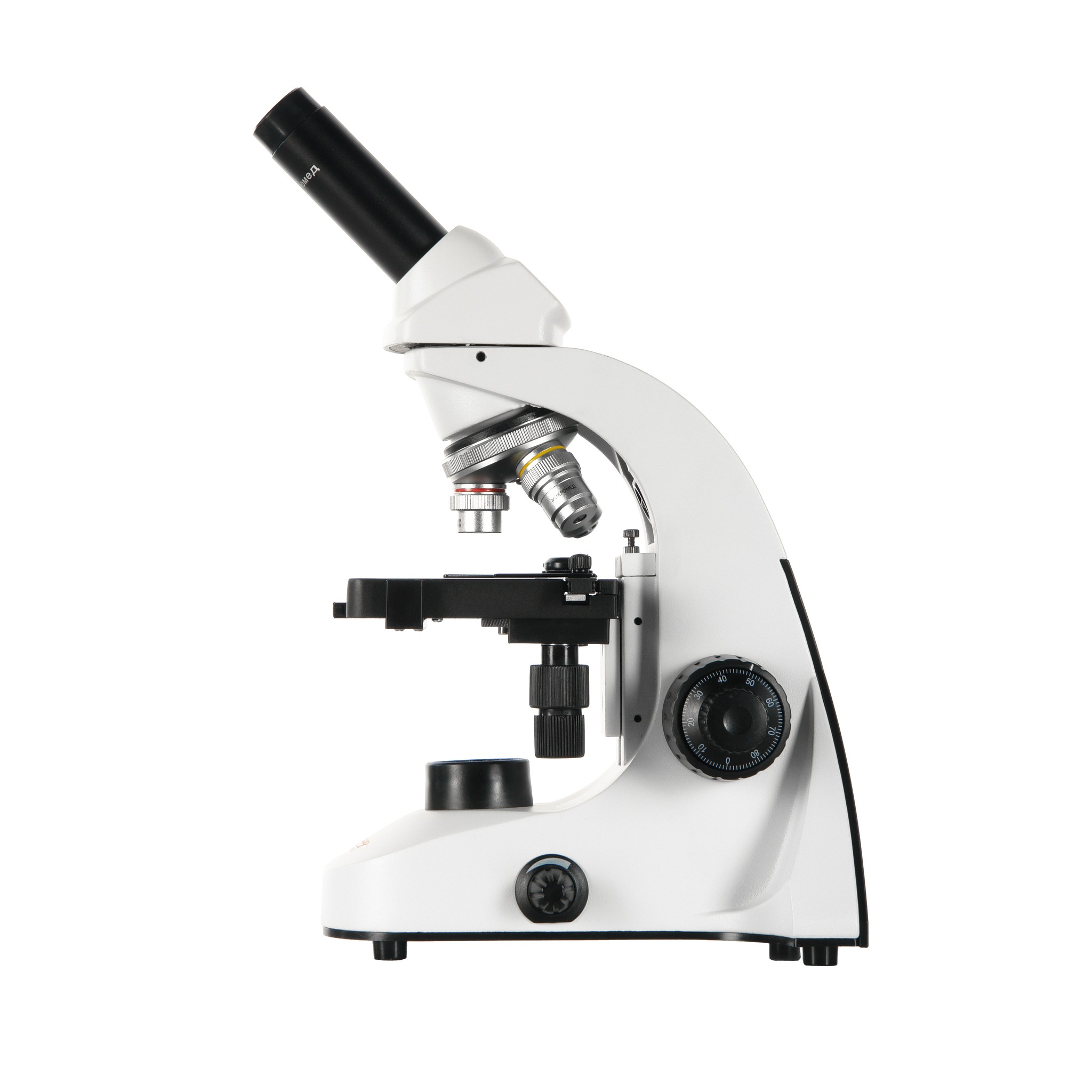 Монокулярный биологический микроскоп для исследований в проходящем свете и отраженном свете. Увеличение от 80х до 800х (до 1280х с линзой Барлоу). Объективы с ахроматической коррекцией. Револьверное устройство на 3 объектива. Светодиодный осветитель. Металлический штатив.