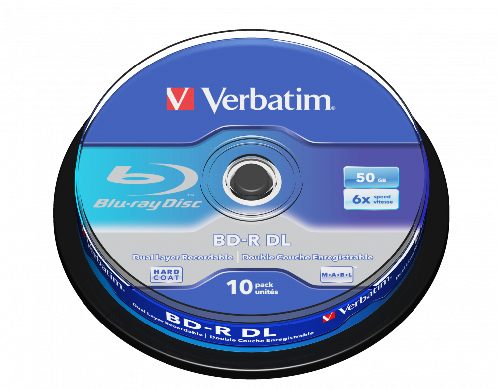 Оптический диск Verbatim BD-R DL 50GB 6X HardCoat, Spindle, 10 шт
