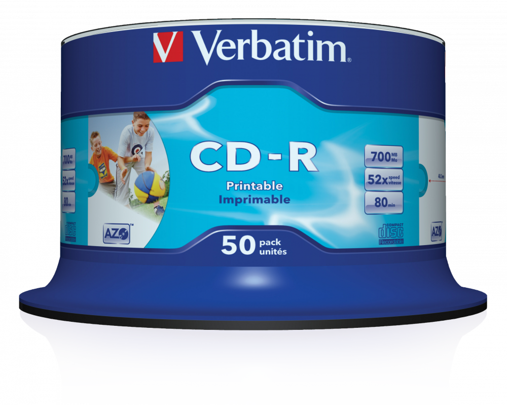 Оптический диск Verbatim CD-R 700MB 52X AZO Inkjet Printable, Spindle, 50 шт