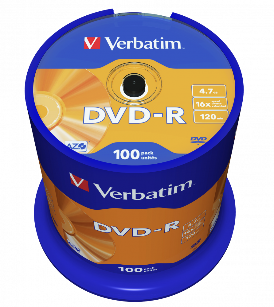 Оптический диск Verbatim DVD-R 4.7GB 16X AZO серебристый матовый (100 шт.)