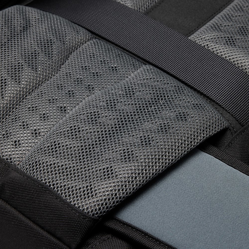 Внутри задней двери вы найдёте прозрачные карманы на молнии, расположенные поверх кармана для ноутбука CradleFit, в который помещается 14-дюймовый MacBook Pro. На боковых дверях есть большие внешние эластичные карманы, в которые помещается бутылка объёмом 1 л, а дно усилено для поддержки штатива. Дополнительные петли и карманы в верхней части боковых сторон обеспечивают быстрый доступ к предметам и надёжное крепление штатива. Рюкзак стоит вертикально, что облегчает его переноску и доступ к снаряжению.