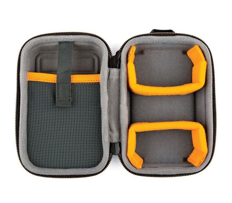 Жесткий чехол-ракушка из прочного и легкого материала FormShell хорошо защищает не только от ударов, но и от сдавливающей нагрузки. Подходит для небольших цифровых камер (Sony RX100 и аналогичные), экшн-камер и 360° панорамных камер. Два внутренних разделителя на липучках позволяют лучше организовать внутреннее пространство (примеры на фото), а также предотвращают «болтанку» камеры внутри чехла. Внутри также предусмотрен карман для USB кабеля, сменного аккумулятора, карты памяти. Молния с двумя застежками открывается легко и быстро.