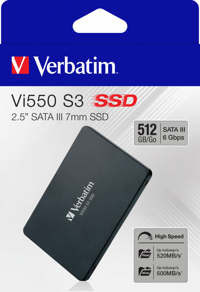 Внутренний накопитель Verbatim Vi550 S3 SSD 2,5'' SATA III 512GB, R/W 560/460 МБ/с