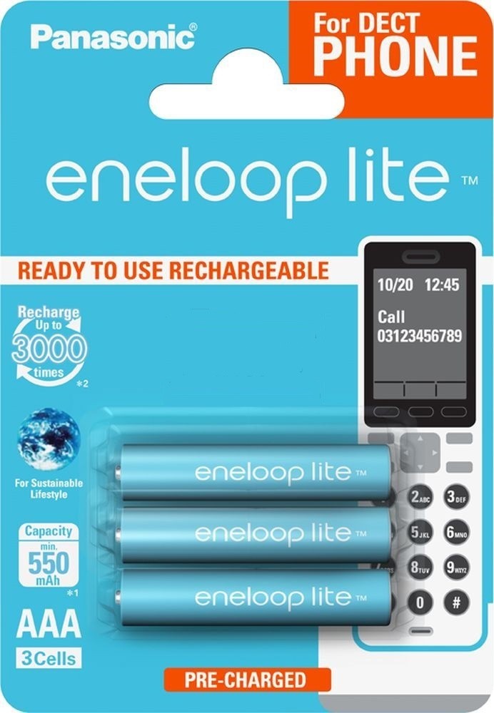 Eneloop Lite – идеальное решение для устройств с низким энергопотреблением, например, часов, инфракрасных пультов дистанционного управления или цифровых радиотелефонов. Eneloop lite обеспечивают 3000 циклов перезарядки: еще более экономичные и экологичные элементы питания.
