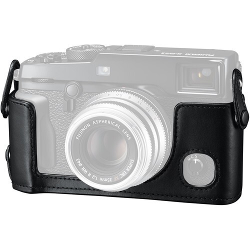 Защитный чехол из натуральной кожи для фотоаппарата Fujifilm X-Pro2. Защищает корпус камеры от ударов и прочих повреждений, не затрудняя управление камерой: откидная "дверца" для батарейного отсека позволяет менять аккумулятор, не снимая чехла. Натуральная кожа обеспечивает отличное сцепление и надежный захват камеры: этот материал превосходно впитывает пот и не дает пальцам проскальзывать. В комплекте также идет ткань для обертывания камеры при переноске в сумке.
