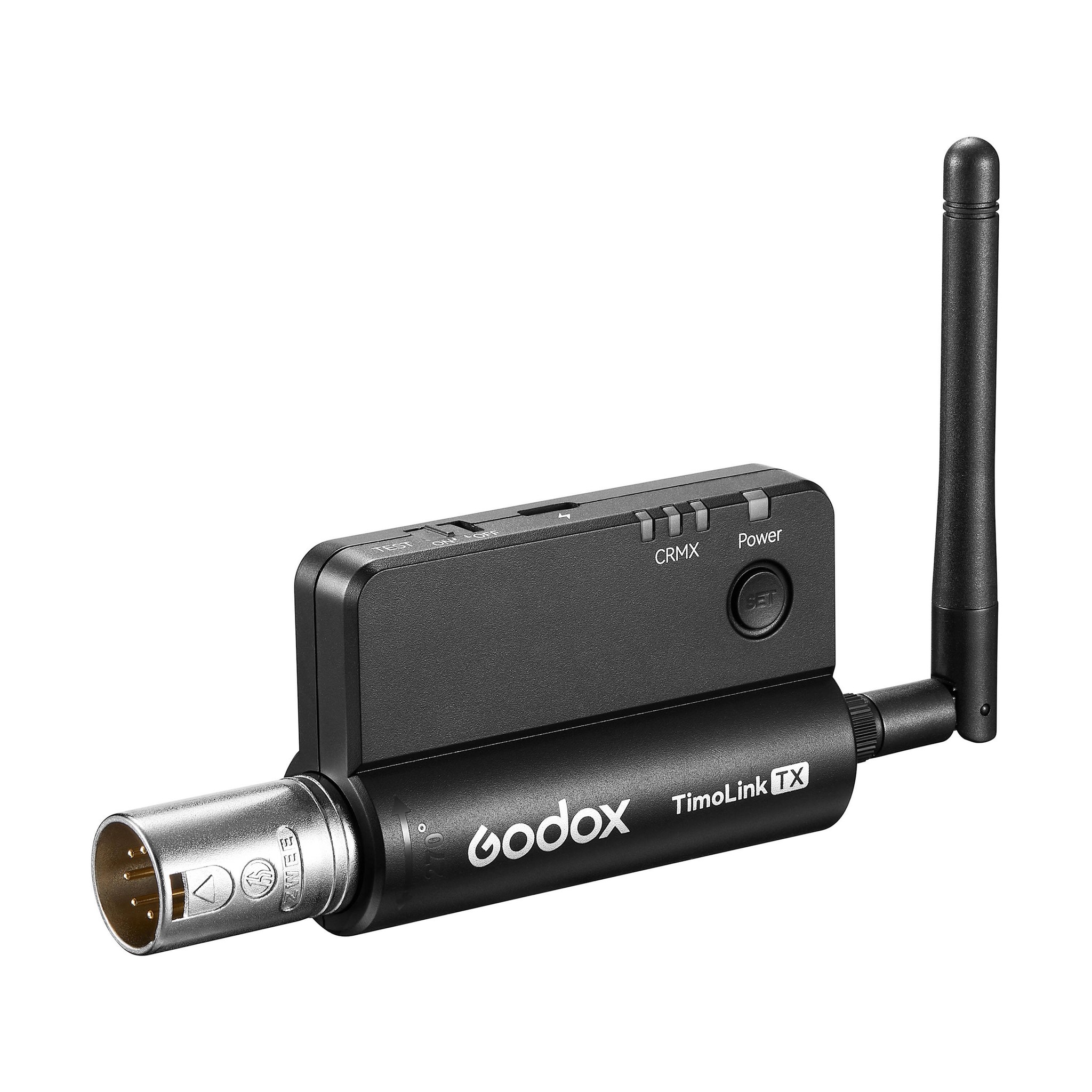DMX передатчик Godox TimoLink TX отправляет сигналы с пульта-контроллера DMX на CRMX-совместимые осветительные приборы (такие как Knowled MG1200Bi, Knowled P600Bi и серия Knowled TP) или приемники Godox TimoLink RX, подключенные к осветителям или другому студийному оборудованию, превращая проводной пульт DMX в беспроводной.