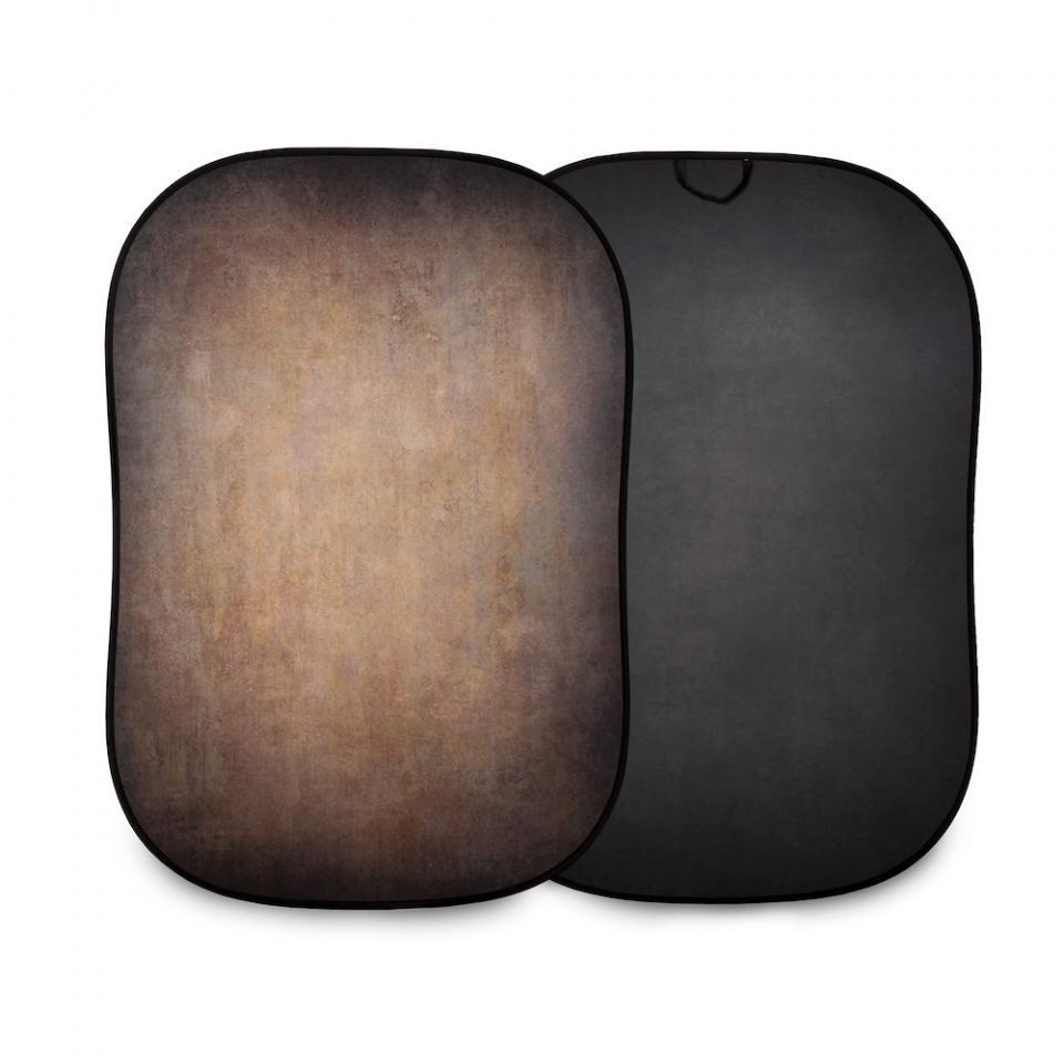 Складной фон орех/олово двусторонний. Он имеет текстурированную поверхность с теплыми тонами, напоминающими старинное дерево, с сильным контрастом и тонкой виньеткой. На реверсе есть эффектная мелкая текстурированная поверхность с оттенками серого и черного, напоминающими уголь или оникс.