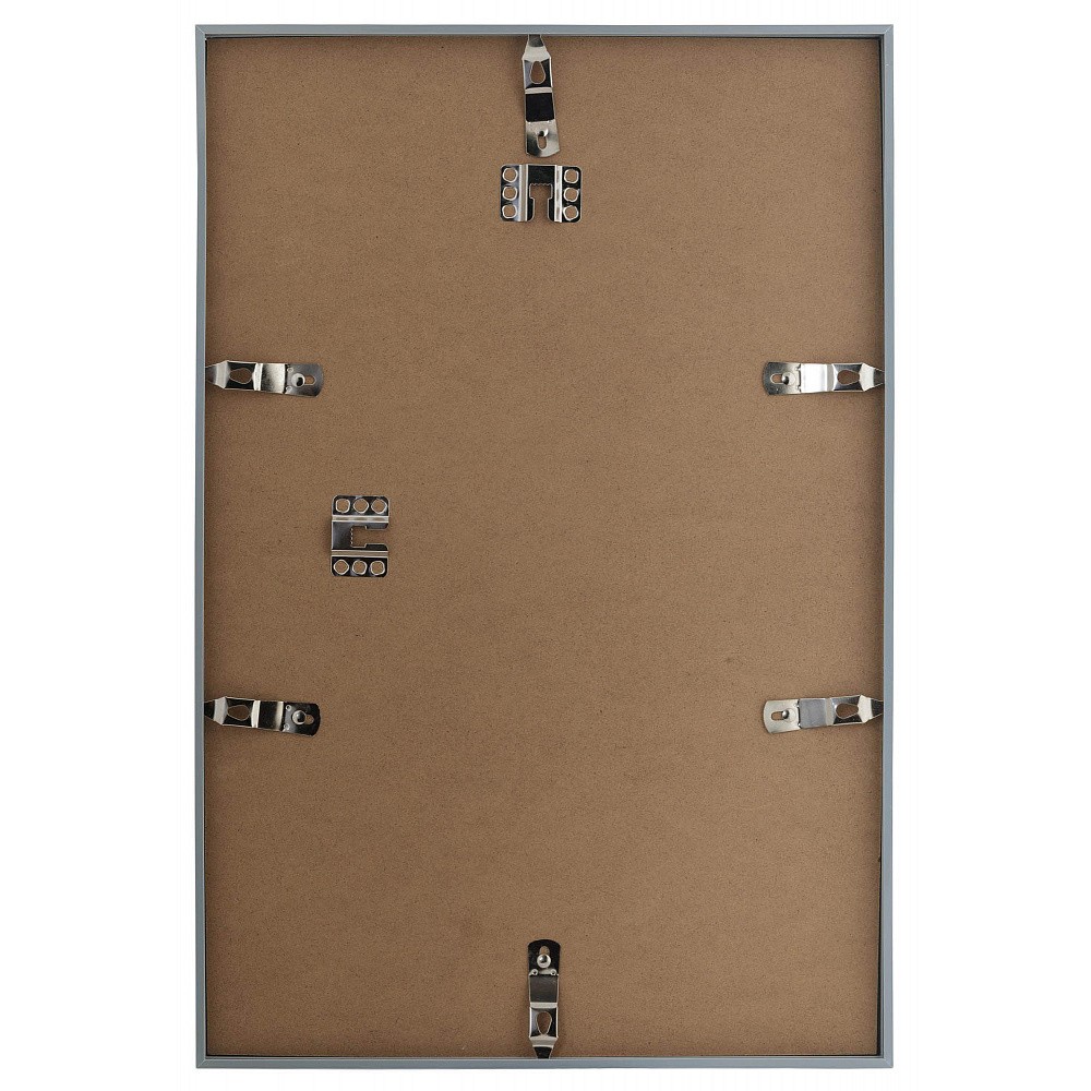 Рамка укомплектована защитным минеральным стеклом 2 мм, задником из шлифованного ДВП и настенными подвесами для горизонтального и вертикального размещения.