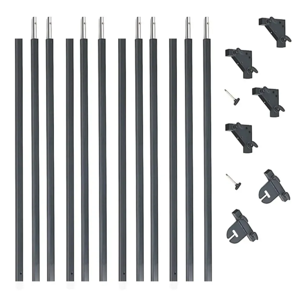 В комплект входит: квадратная трубка длиной 1,2 м Female (BF40) x4, квадратная трубка длиной 1,2 м Male (BF45) x8, монтажная пластина (FH10) x2, уголок (A) (FC15A) x2, уголок (B) (FC15B) x2, болт для рамы (A17) x2