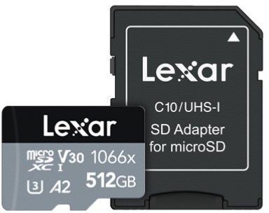Карта памяти Lexar Professional 1066x Silver microSDXC 512GB с адаптером (входит в комплект).