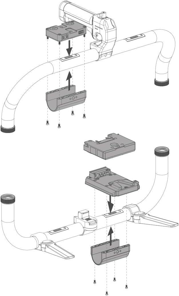 Для обеспечения более длительного времени работы вы также можете отдельно приобрести площадку V-Mount Battery Plate или Gold Mount Battery Plate для аккумуляторов V-Mount и Gold Mount соответственно. Площадки устанавливаются на нижнюю дугу хвата в специальные точки с контактами справа или слева от стабилизатора.