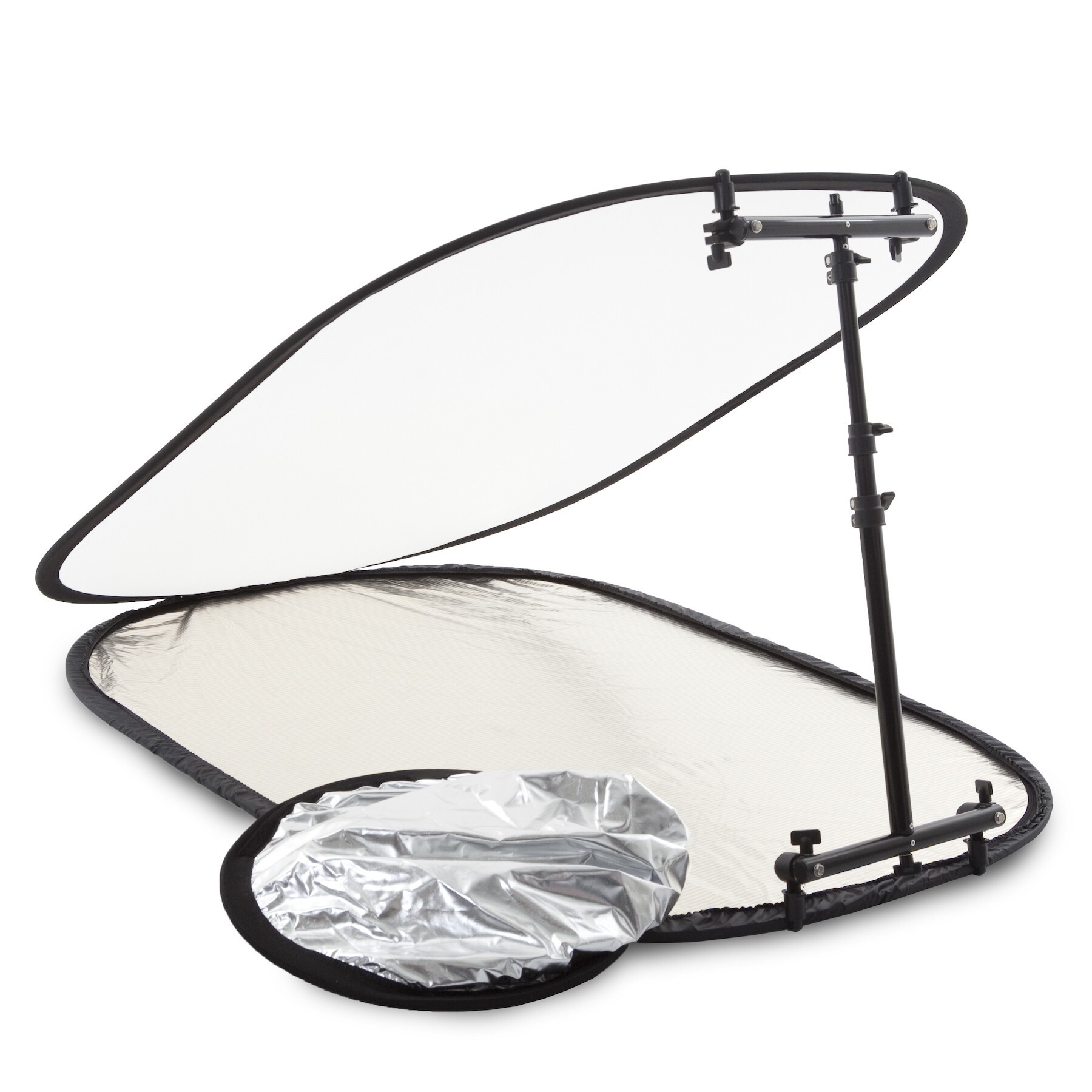 Угловой отражатель UpLite из авторской коллекции Джо МакНэлли включает 2 двусторонних рефлектора (silver/white и sunlite/soft silver) размером 120см x 90см плюс 2 рассеивателя аналогичного размера. Любая комбинация этих панелей может быть сформирована для отражения под углом от пола, а угол между панелями может быть отрегулирован в диапазоне от 30 до 80 градусов. Джо иногда заменяет верхний отражатель на рассеиватель и использует при съемке рассеянный свет от одной или более вспышек.