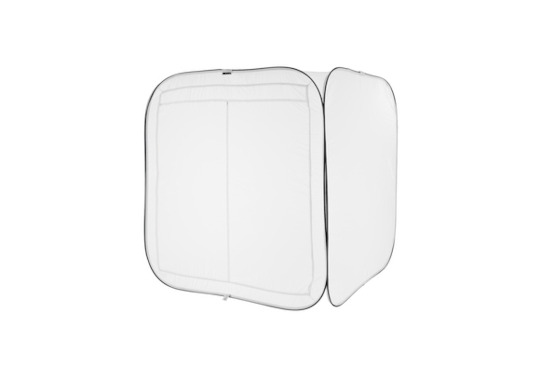 Лайткуб бестеневой Lastolite LL LR3687 со съемной задней стенкой. Позволят быстро получить качественные и четкие снимки без использования светоформирующих насадок. Размеры 90х90х90 см. Комплектуется клипсами, для установки дополнительного фона. Отсутствие ткани в нижней части кублайта, позволяет установить его сверху на тяжелый предмет. Фронтальная часть съемная, крепится на липучках. Разбирается и собирается за минуту. В сложенном виде компактен, упакован в фирменный прорезиненный чехол диаметром 50 см и толщиной 8 см, вес 2,2 кг