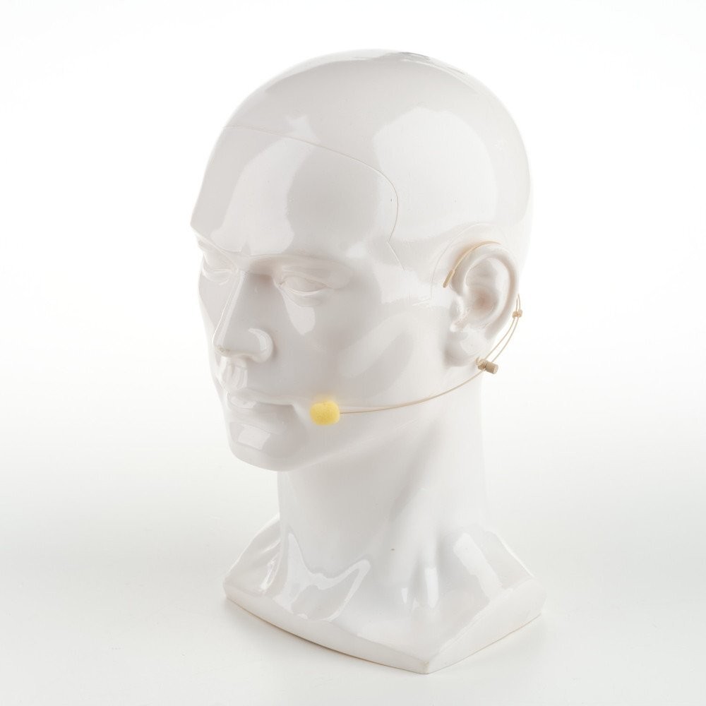 DK6G крепится к обоим ушам, обеспечивая максимальный комфорт и уверенную посадку, даже если человек, носящий его, очень активен. Он максимально легкий, весит всего 0,7 унции (20 г), поэтому не стесняет движений. Длину кронштейна микрофонной стойки можно легко отрегулировать для людей разного роста, а кабель идеальной длины подходит для подключения беспроводных передатчиков, закрепленных на поясе, или портативных аудиомагнитофонов, спрятанных в кармане.