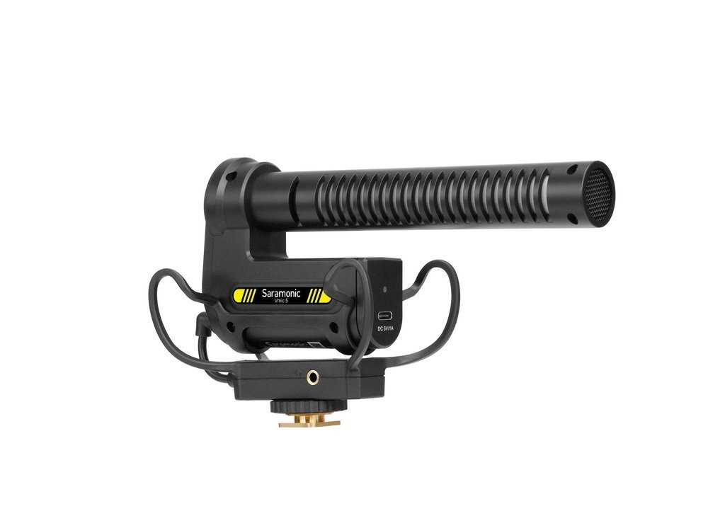 Saramonic Vmic5 - это суперкардиоидный микрофон типа «пушка» для зеркальных, беззеркальных и видеокамер. Vmic5 снабжен регулятором уровня выходного сигнала (0Дб, +10дБ) и фильтром низких частот (150 Гц, отключаемый). Благодаря разъему 3.5мм вы можете подключить наушники для мониторинга звука. Подвес специальной формы гасит вибрацию и механический шум. Встроенная батарея позволяет производить зарядку микрофона через разъем USB-C (5 В, 1 А). В комплект входит поролоновая ветрозащита, меховая ветрозащита, кабель USB-C, аудиокабель 3.5 мм с штекером TRS.