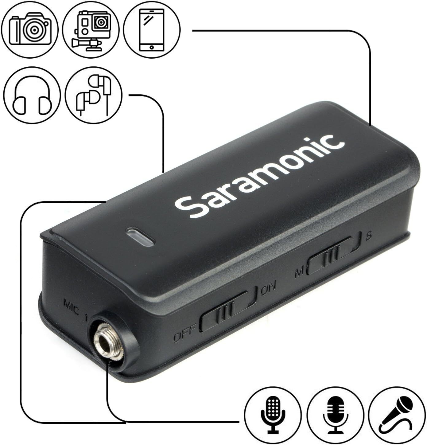 Saramonic LavMic - это профессиональный петличный микрофон с двухканальным аудиомикшером. Регулировка и контроль уровня записываемого сигнала. Мониторинг через наушники.