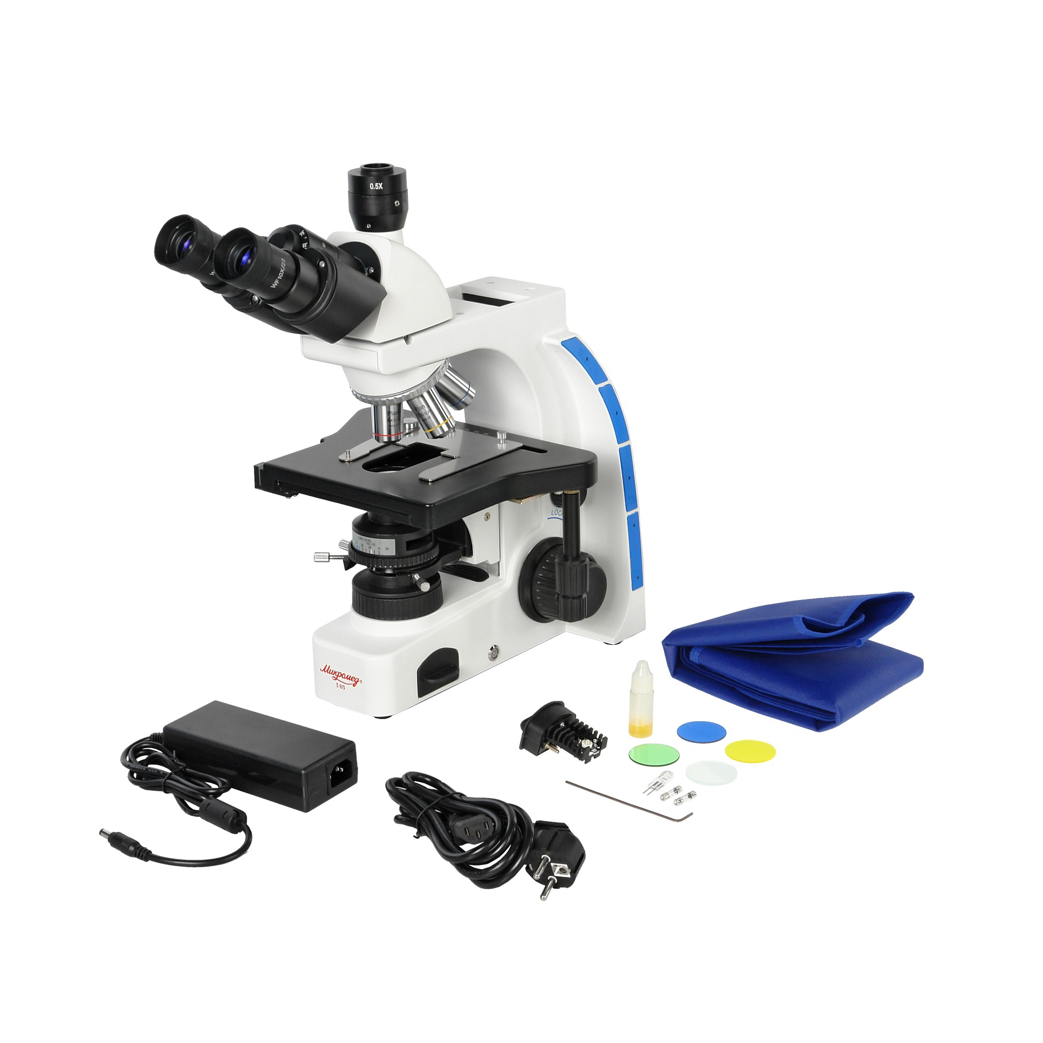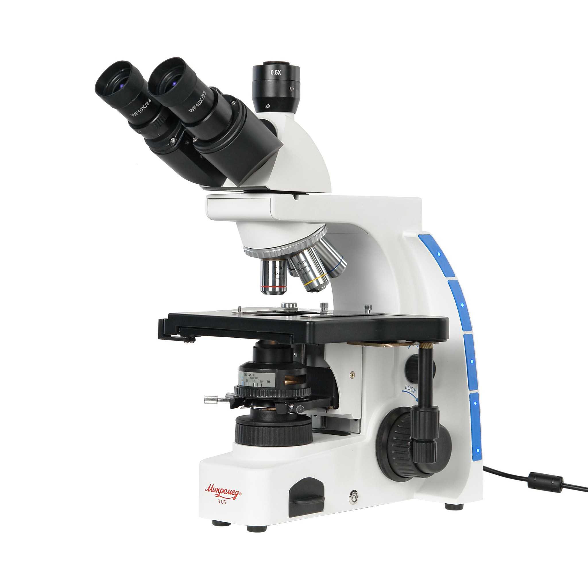 Микроскоп предназначен для исследований в проходящем свете по методу светлого поля. ?Осветительная система Кёлера. Светодиодное или галогенное освещение. Тринокулярная конструкция позволяет использовать цифровые окулярные камеры. Увеличение микроскопа в базовой комплектации 40х-1000х, с дополнительными окулярами 20х-1600х. Револьверное устройство на 5 объективов.