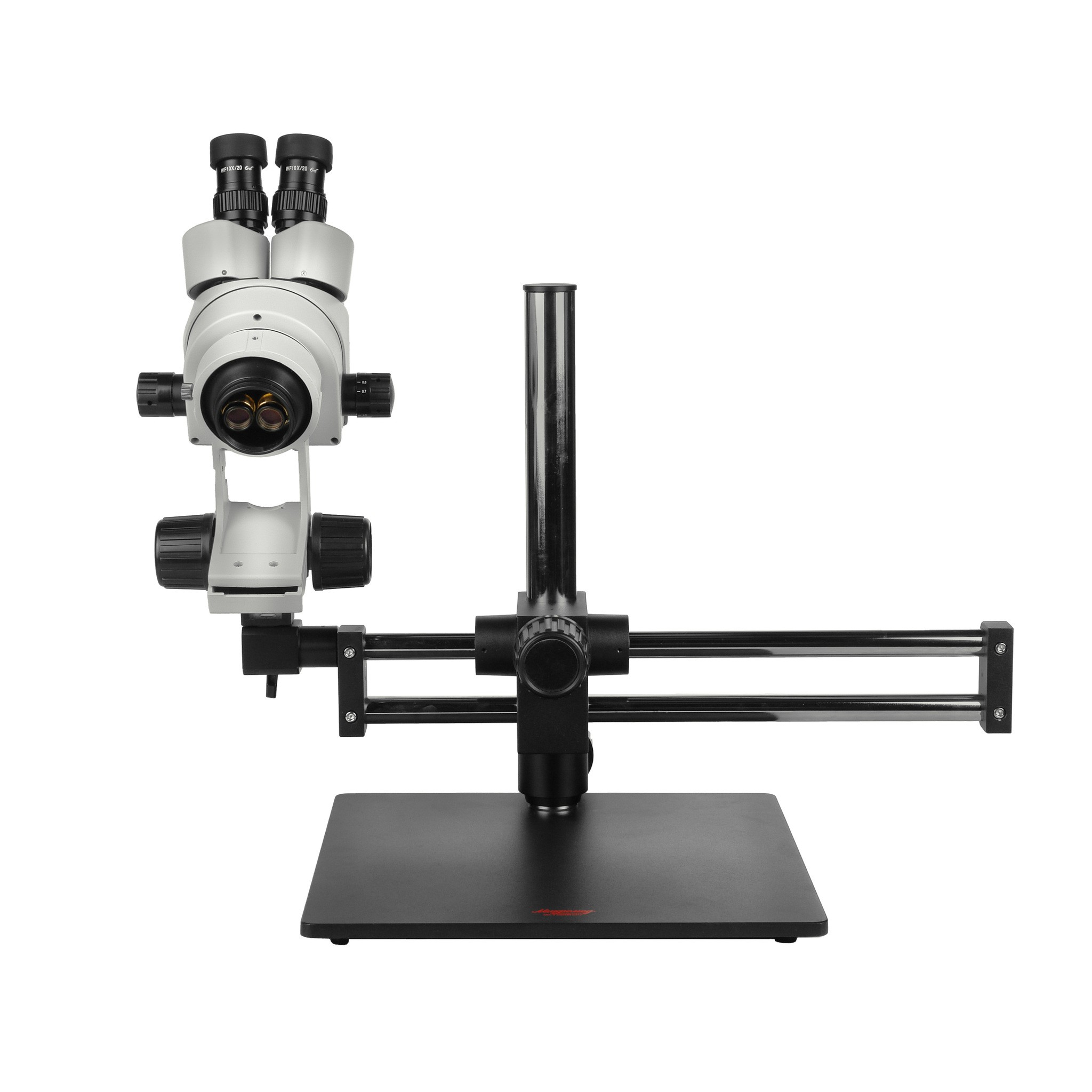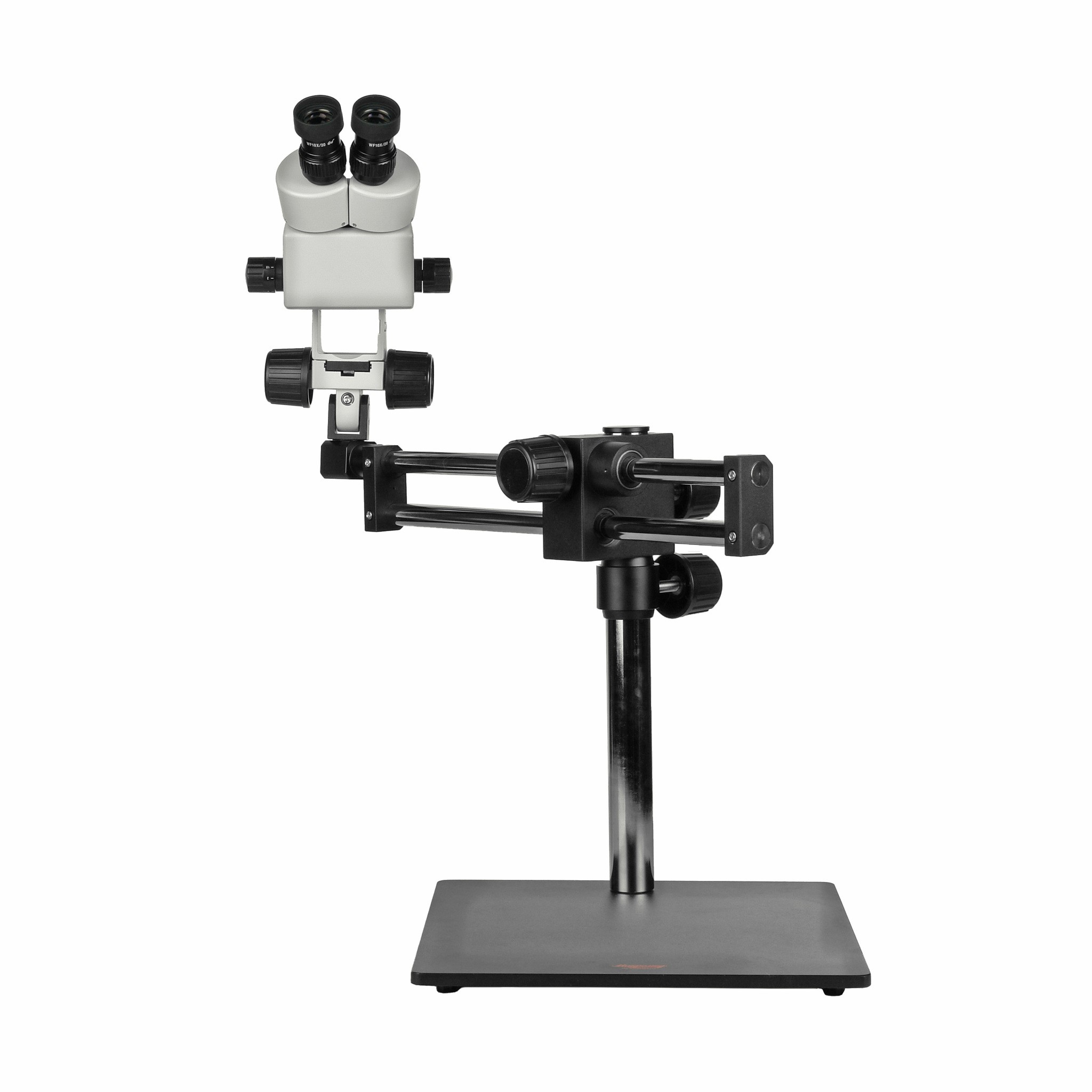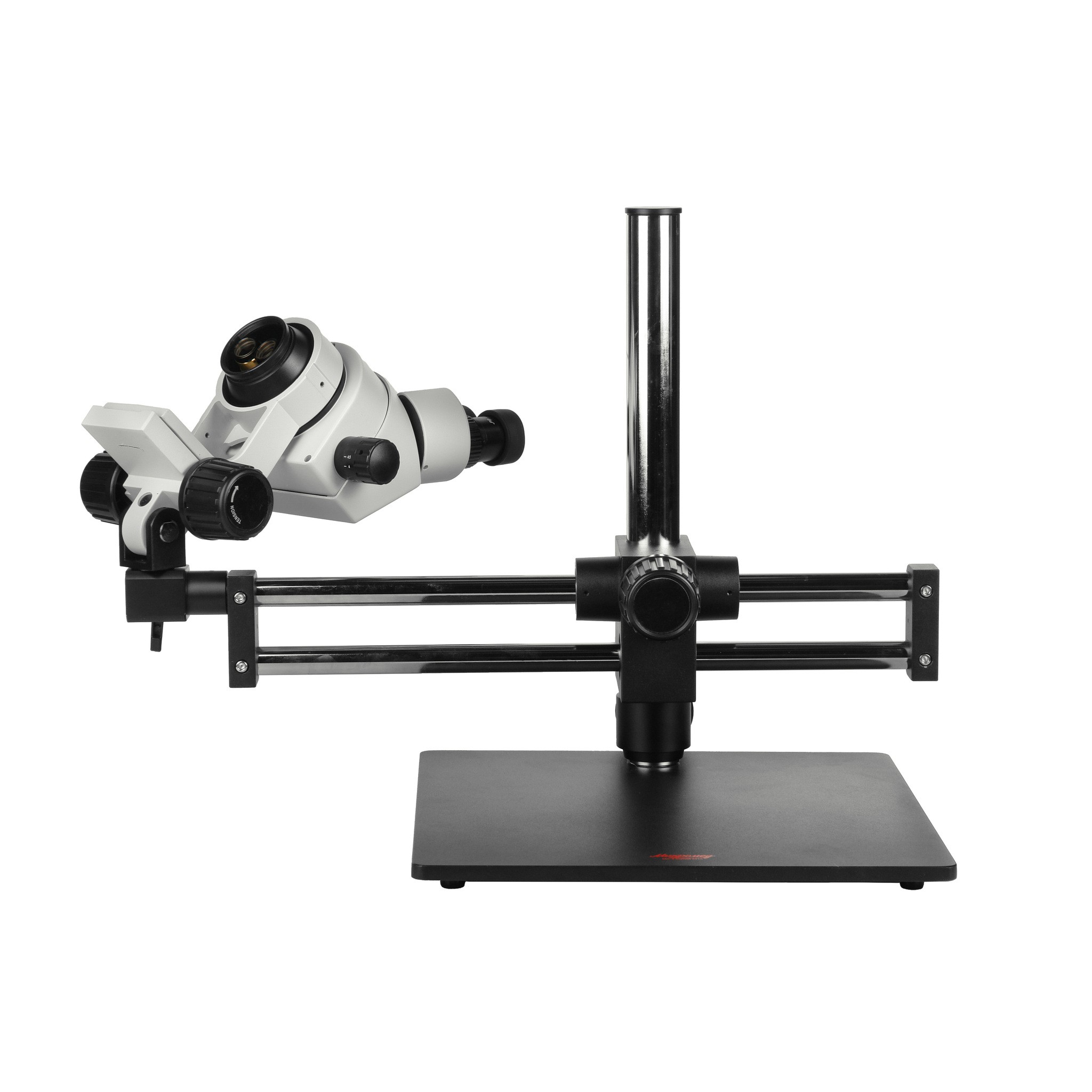 Стереоскопический микроскоп с переменным увеличением 7х-45х. Рабочее расстояние 100 мм. Специальный штатив с 4-мя степенями свободы и большим диапазоном регулировок положения.