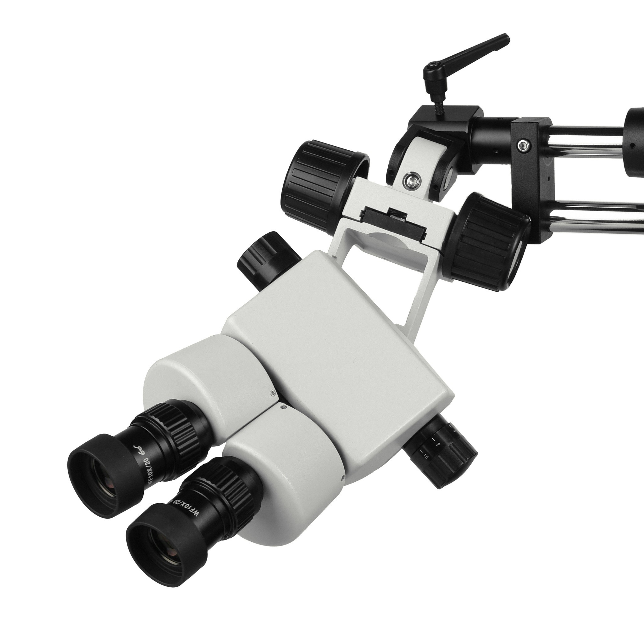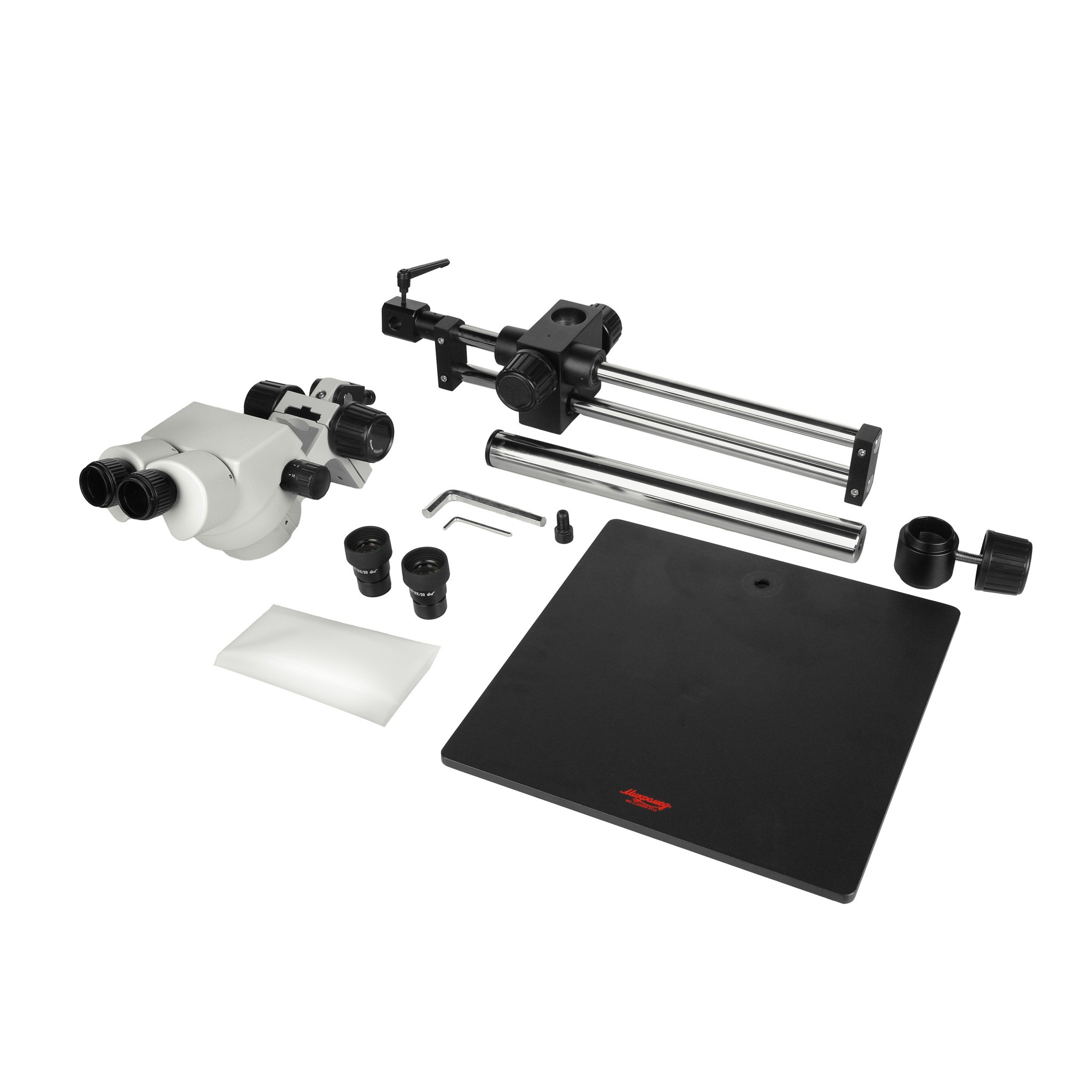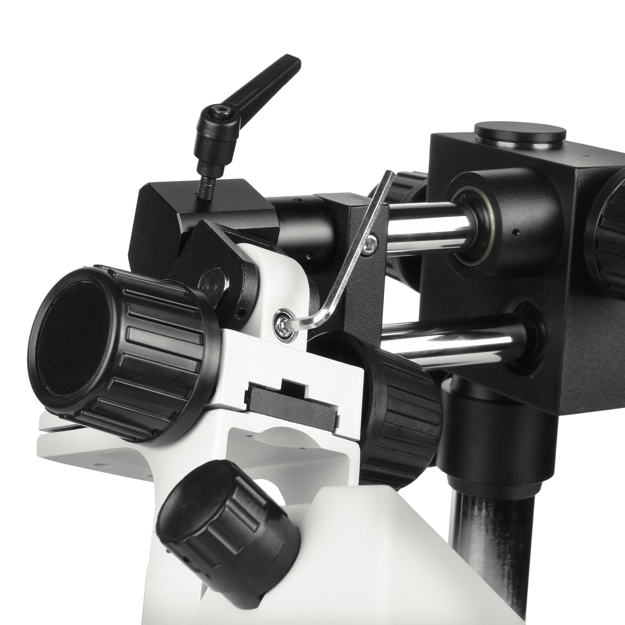 Стереоскопический микроскоп с переменным увеличением 7х-45х. Рабочее расстояние 100 мм. Специальный штатив с 4-мя степенями свободы и большим диапазоном регулировок положения.