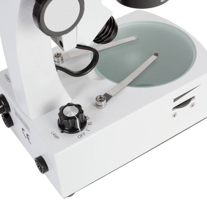 Имеет два фиксированных увеличения 20х и 40х. Увеличенное рабочее расстояние 76 мм. Встроенная цифровая камера 3Мр. Два осветителя отраженного и проходящего света.