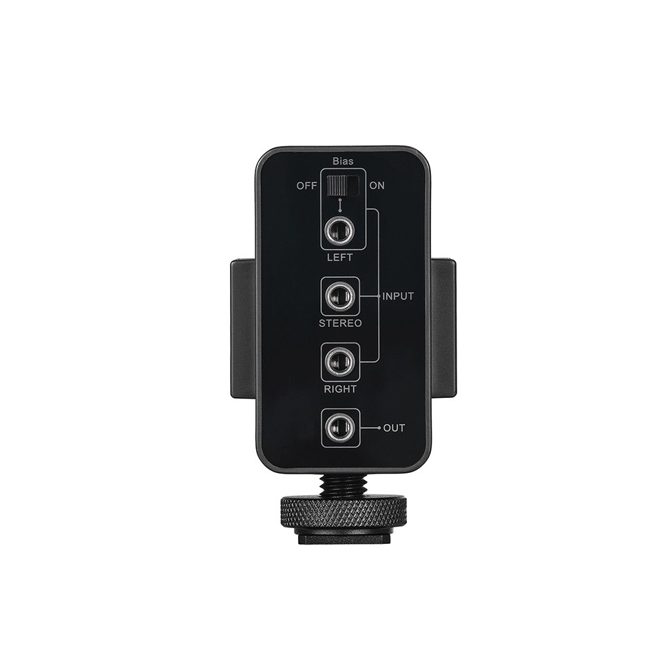 - Широко совместим с различными источниками входного аудиосигнала, такими как беспроводные микрофоны, накамерные микрофоны-пушки, пассивные микрофоны и другие
