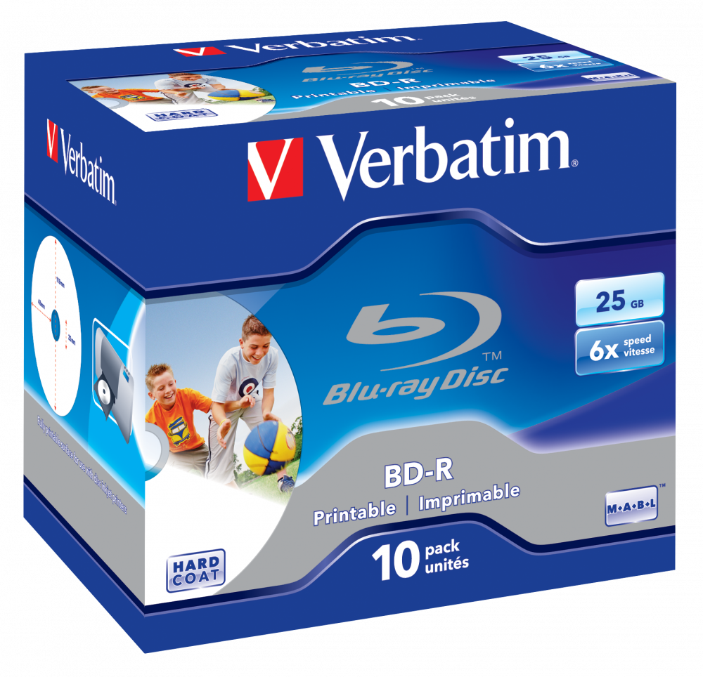 Оптический диск Verbatim BD-R SL 25GB 6X HardCoat Inkjet Printable, Slim Case, 10 шт