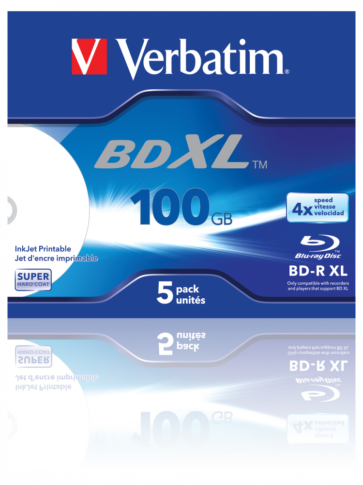 Диски Verbatim для печати обладают поверхностью, подходящей для печати на струйном принтере. Вы можете напечатать все что угодно на всей поверхности этих дисков.У дисков Blu-ray серии BD-R XL от компании Verbatim есть третий слой, увеличивающий их емкость до 100 Гб!