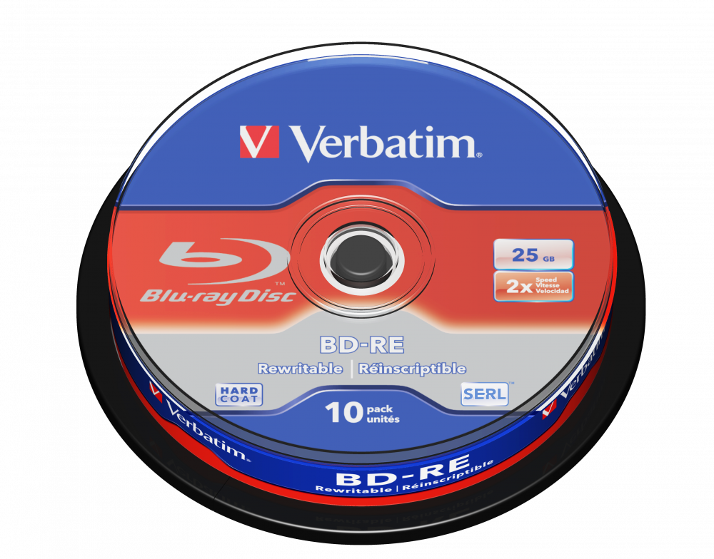 Оптический диск Verbatim BD-RE SL 25GB 2X HardCoat SERL, Spindle, 10 шт
