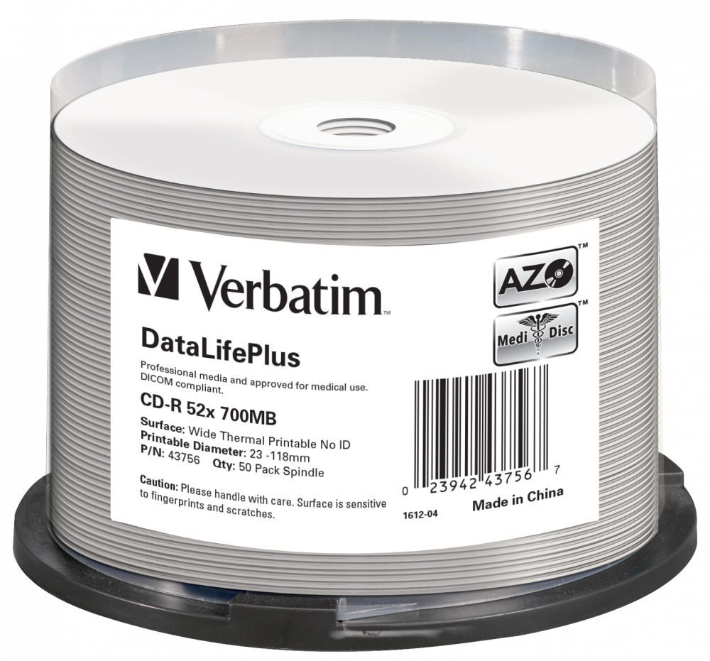 На дисках Verbatim для термопечати можно печатать фотографии высокого разрешения и четкий текст по всей площади с помощью термопринтера. Быстросохнущая поверхность обеспечивает безукоризненно четкое качество печати. Диски для термопечати совместимы с термальными принтерами TEAC P55B & C, Rimage Everest 400 & 600, а также с моделями серии Rimage Prism Plus.