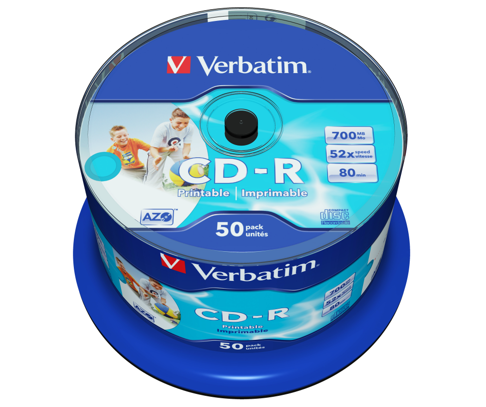 Оптический диск Verbatim CD-R 700MB 52X AZO Inkjet Printable, Spindle, 50 шт