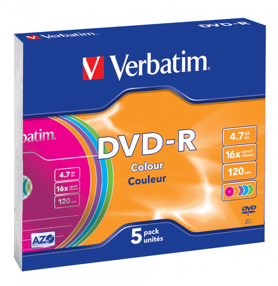 Оптический диск Verbatim DVD-R 4.7GB 16X AZO Color, Slim Case, 5 шт