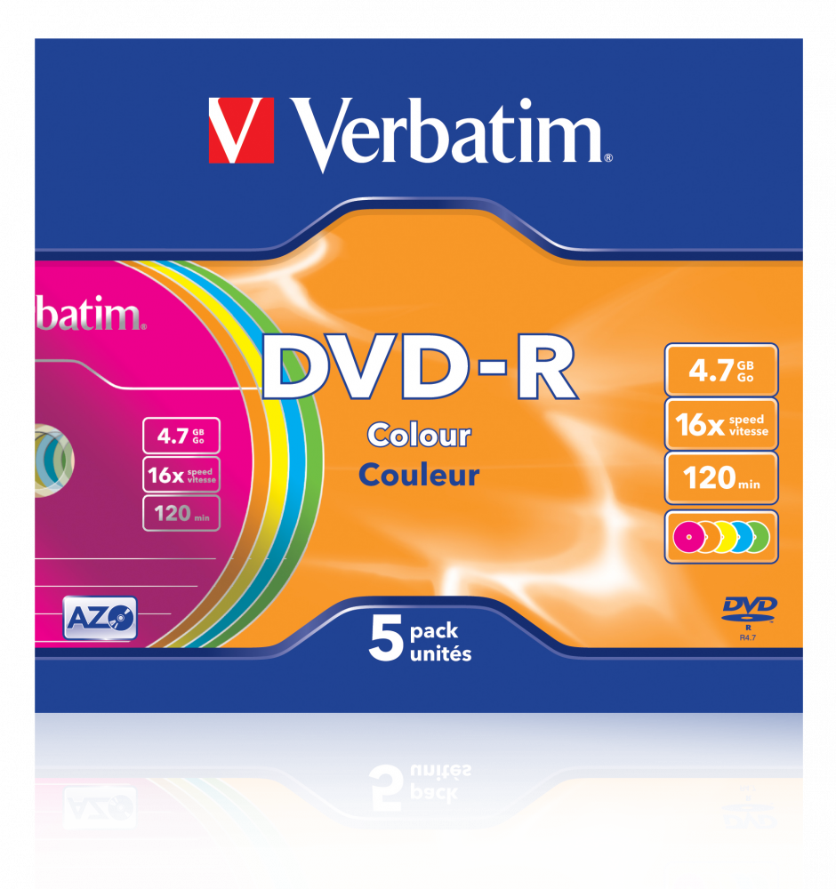 Оптический диск Verbatim DVD-R 4.7GB16X AZO цветной (5 шт.)