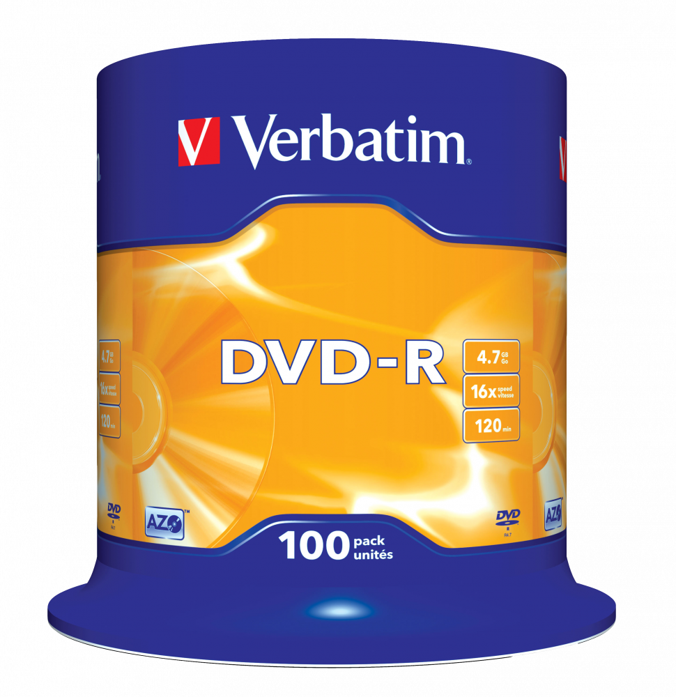 Оптический диск Verbatim DVD-R 4.7GB 16X AZO серебристый матовый (100 шт.)