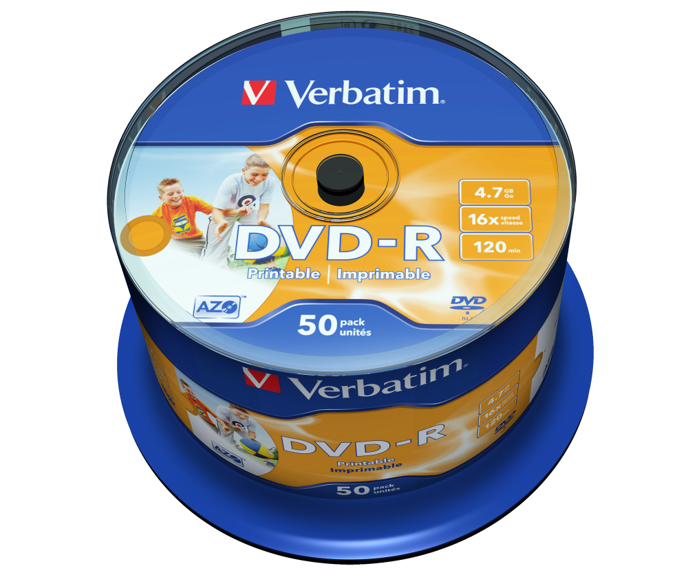 Оптический диск Verbatim DVD-R 4.7GB 16X AZO Wide Inkjet Printable No ID Brand, Spindle, 50 шт