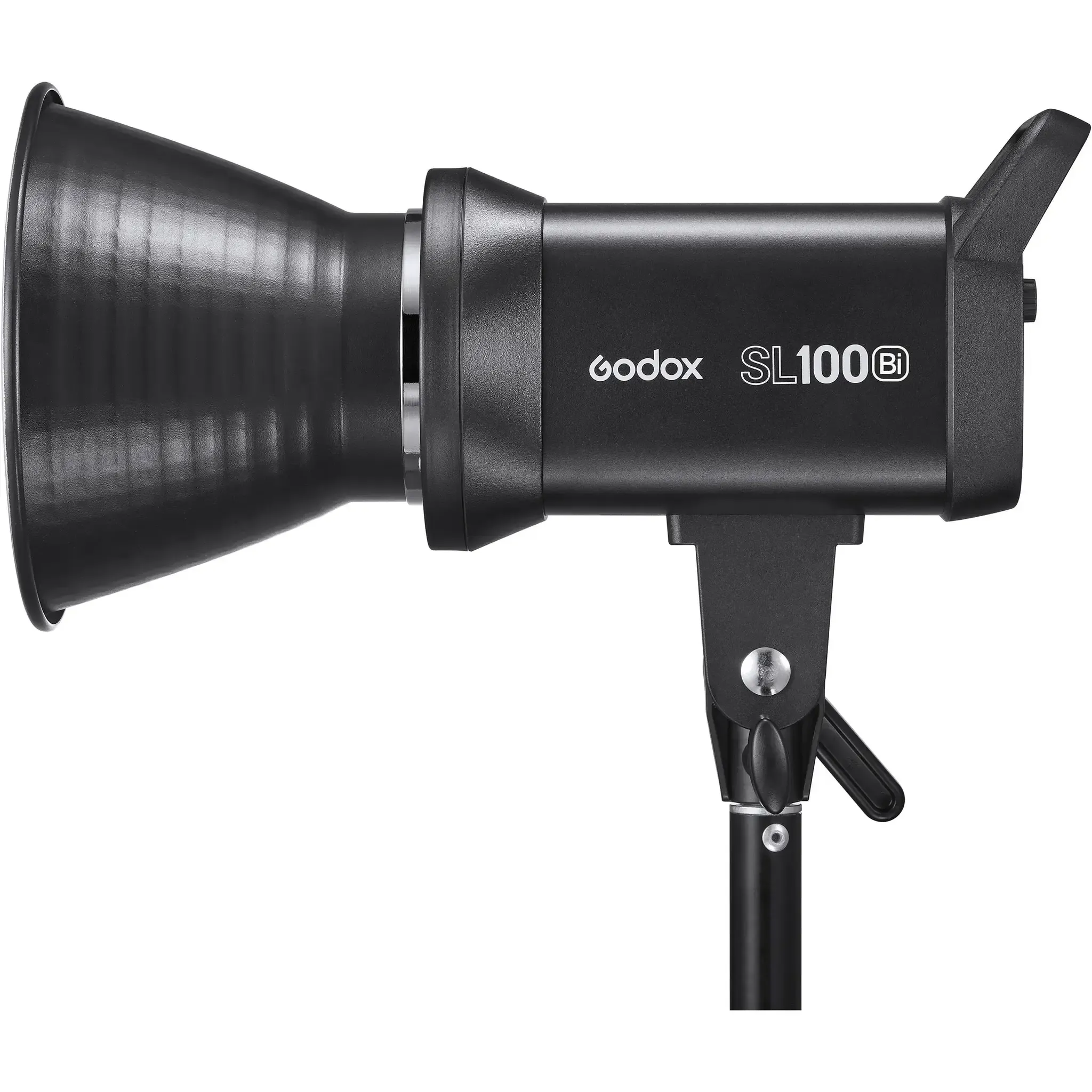Godox SL100BI – бюджетный, компактный и очень мощный светодиодный осветитель, выдающий световой поток с регулируемой цветовой температурой 2800K~6500K (в широком диапазоне от «теплого» до «холодного» белого цвета) и регулируемой яркостью от 0 до 100%. Максимальная освещенность на расстоянии 1 метра со стандартным «зеркальным» рефлектором (входящим в комплект) составляет 32100 лк.