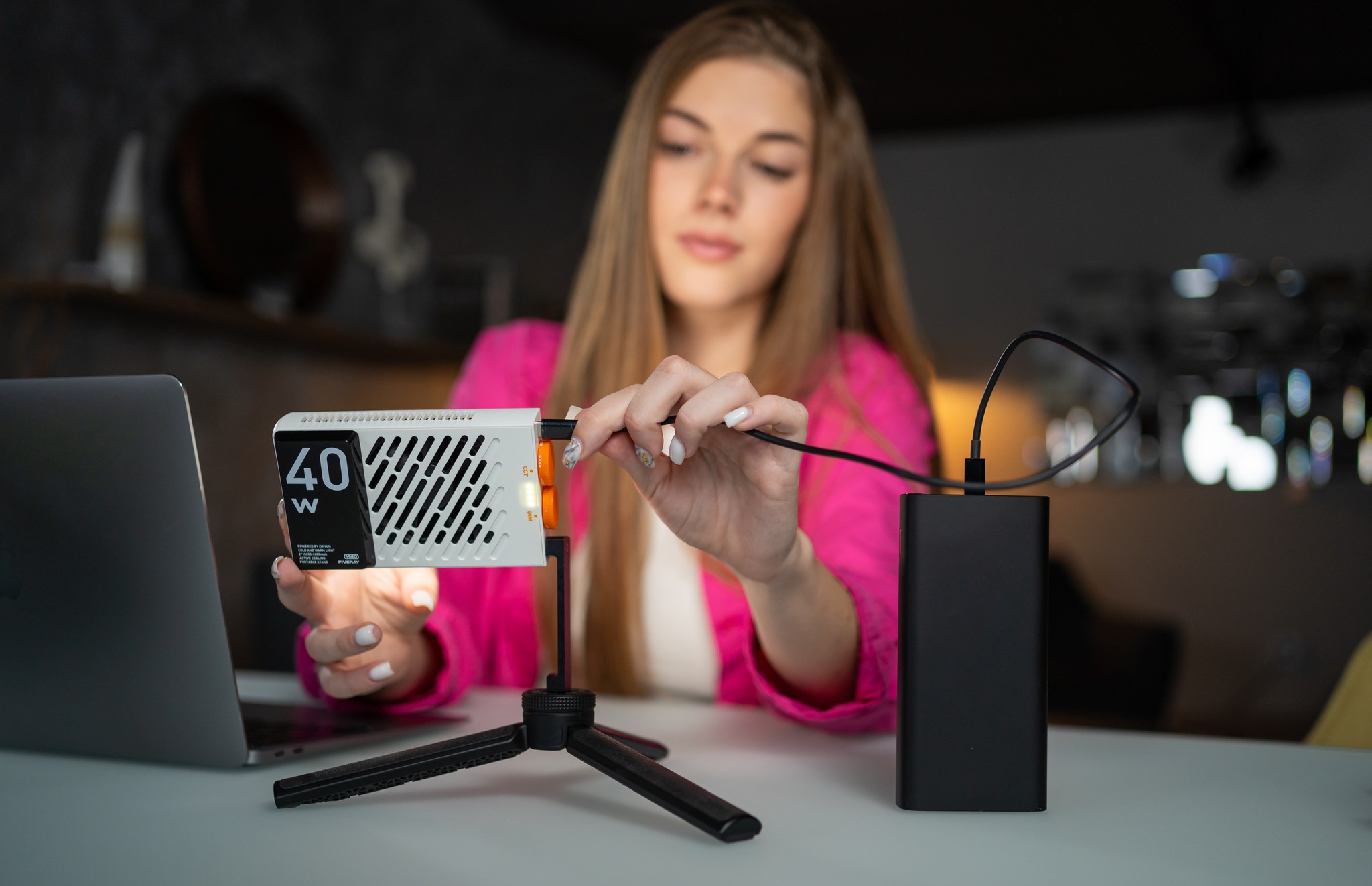 Источник света ZHIYUN M40 размером с ладонь олицетворяет простоту и практичность. Основанная на системе пространственного управления, применяемой в стабилизаторах Zhiyun, технология DynaVort обеспечивает лучшее рассеивание тепла, позволяет использовать вентиляторы меньшего размера и, следовательно, в итоге получить компактное устройство без ущерба для его выходной мощности 40 Вт; тогда как другие источники света сопоставимого размера в настоящее время предлагают мощность только 5-13 Вт. При весе всего 320 г он легко помещается в кармане, выглядит стильно и станет отличным компаньоном для видеооператоров, будь то любители или профессионалы.