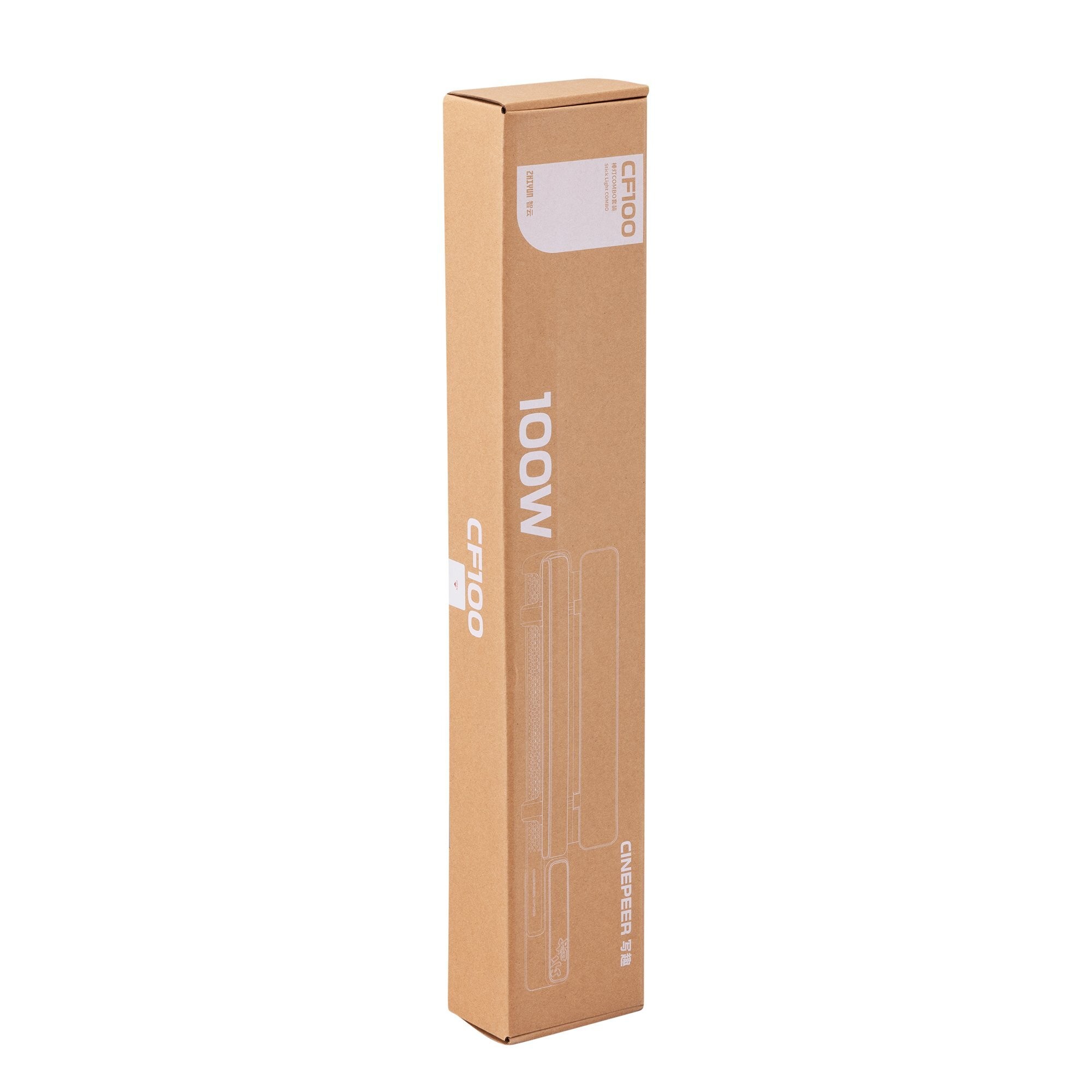 CINEPEER CF100 оснащен простым переключателем режимов и интуитивно понятным диском для точной настройки параметров. Стандартный режим CCT светильника обеспечивает освещенность до 1370 лк, а режим полной мощности может давать освещеноность 2610 лк.