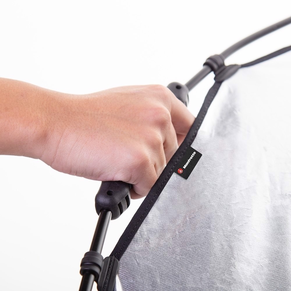 Отражатели и рассеиватели HaloCompact оснащены удобной в работе рукояткой. С ее помощью рефлектором диаметром 82 см легко управлять одной рукой.