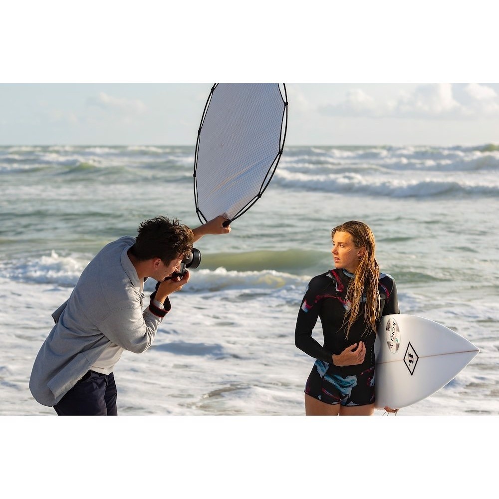 Поверхность Sunlite представляет собой комбинацию серебряных и золотых полос, что дает немного более теплый отражающий тон, чем стандартное полностью серебряное покрытие. Идеально подходит для теплых оттенков кожи и съемки в золотой час, дополняет солнечные тона.