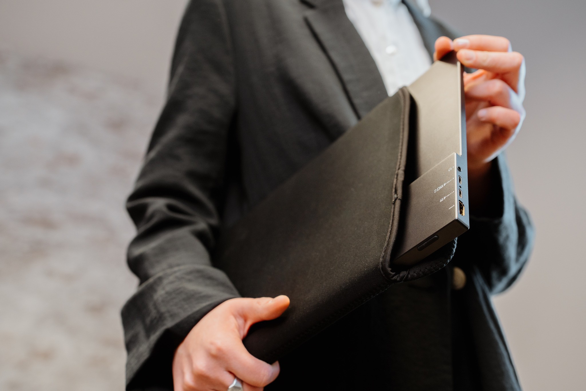 Лёгкий и тонкий портативный монитор с сенсорным экраном легко помещается в большинство дорожных сумок. Он выполнен в прочном алюминиевом корпусе и оснащён прилагаемым неопреновым защитным чехлом, что делает его идеальным спутником в поездках.