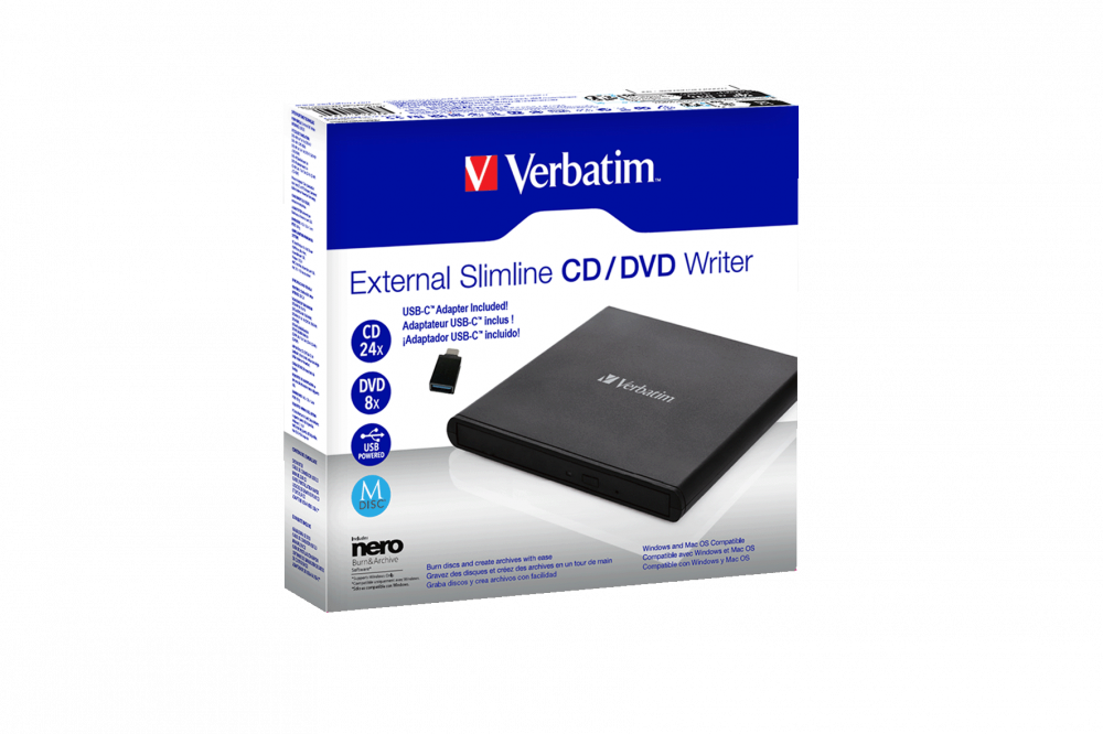 Все больше и больше производителей ноутбуков принимают решение исключить оптический привод из своих устройств для облегчения конструкции. Тем не менее компакт-диски и DVD-диски по-прежнему являются одними из самых широко распространенных типов носителей. Компания Verbatim нашла решение этой проблемы благодаря компактному внешнему пишущему приводу дисков CD/DVD.