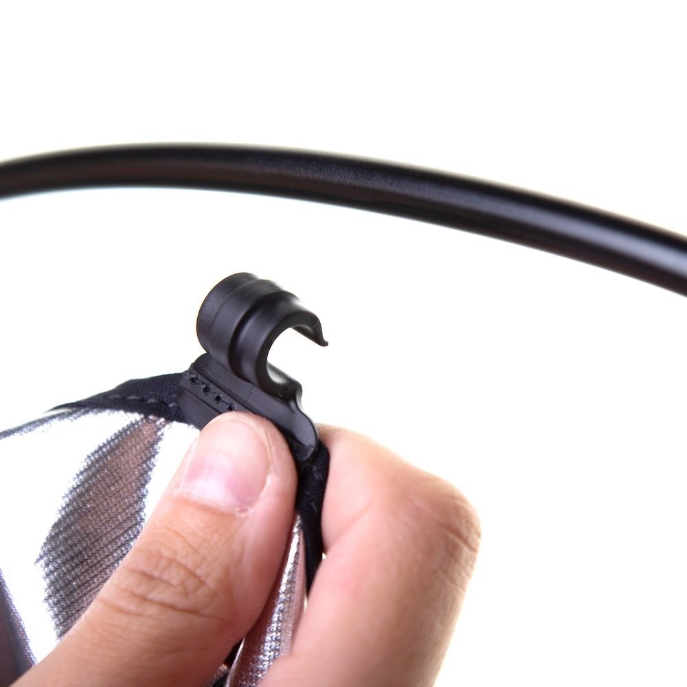 Складная алюминиевая рамка быстро собирается, и на нее устанавливантся отражатель или диффузер, фиксируясь на быстрозажимных клипсах. Рамка RapidExoframe разбирается на маленькие сегменты и упаковывается в чехол размером всего 6.5 x 27 x 6.5 см. Вся конструкция весит 335г (рамка, ткань и чехол).